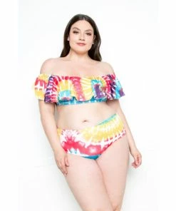 Buxom Couture Tie-Dye Ruffle Bikini Set Swimwear Pink Tie-dye