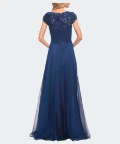 La Femme Chiffon Dress With Lace Bodice And Cap Sleeves