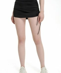 Anna-Kaci Crossover V Waist Ruched Drawstring Mini Lined Fitness Skirt