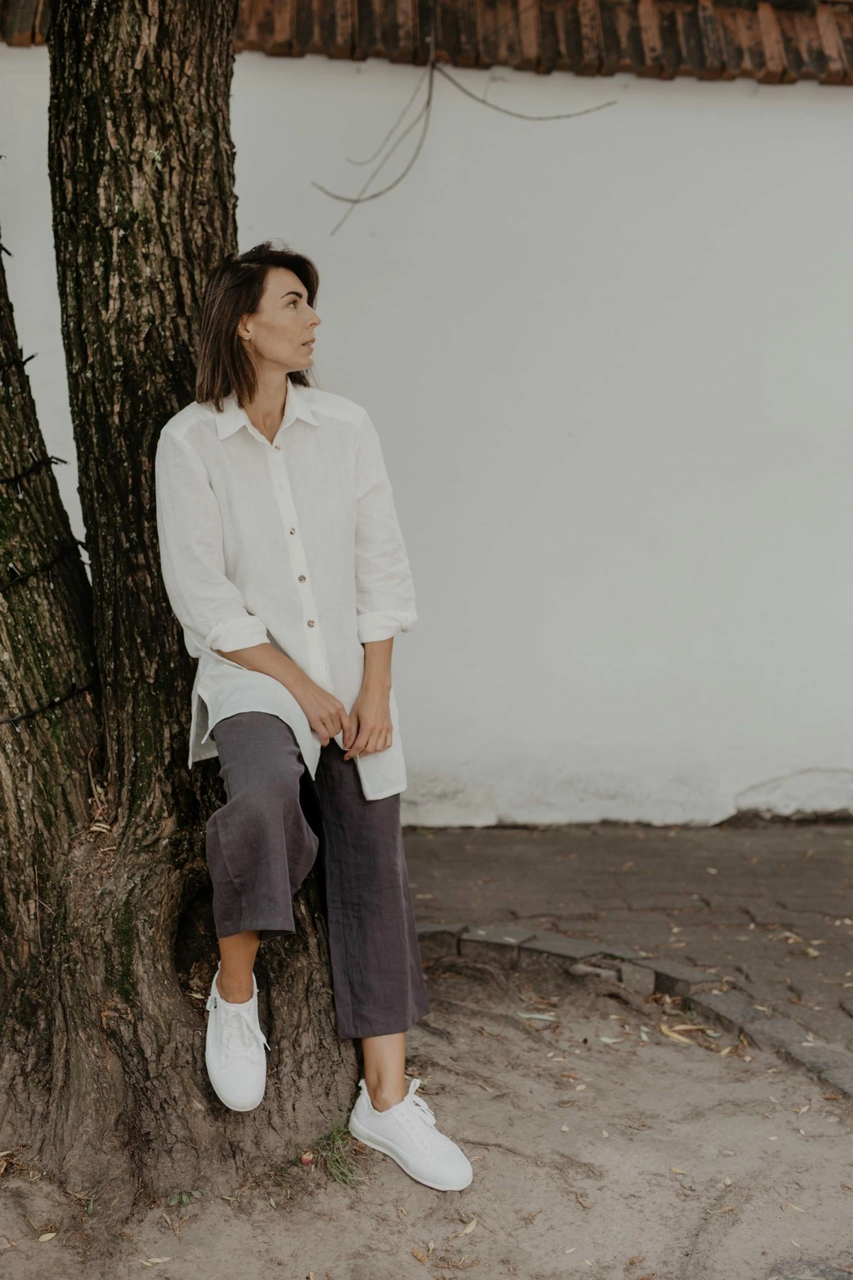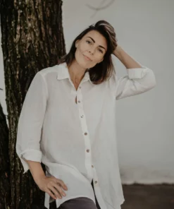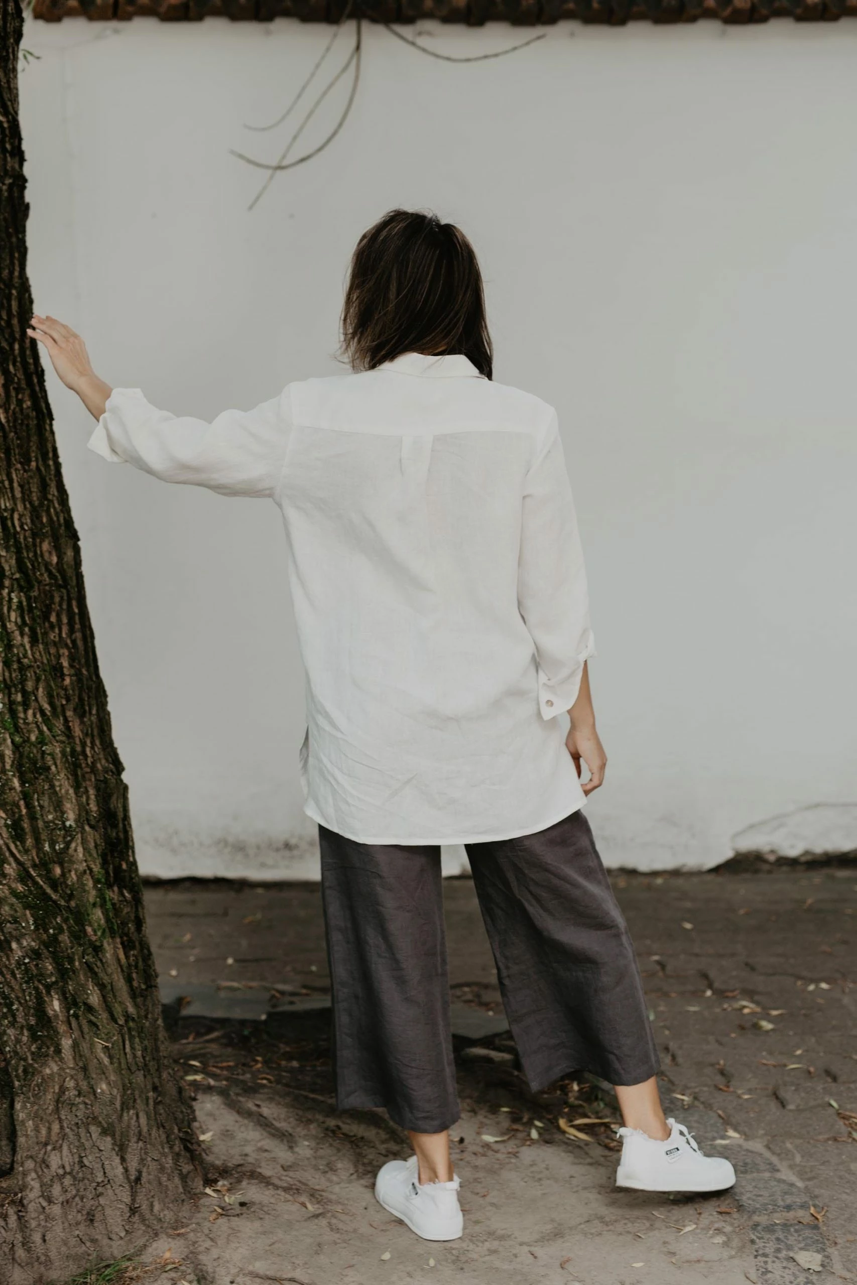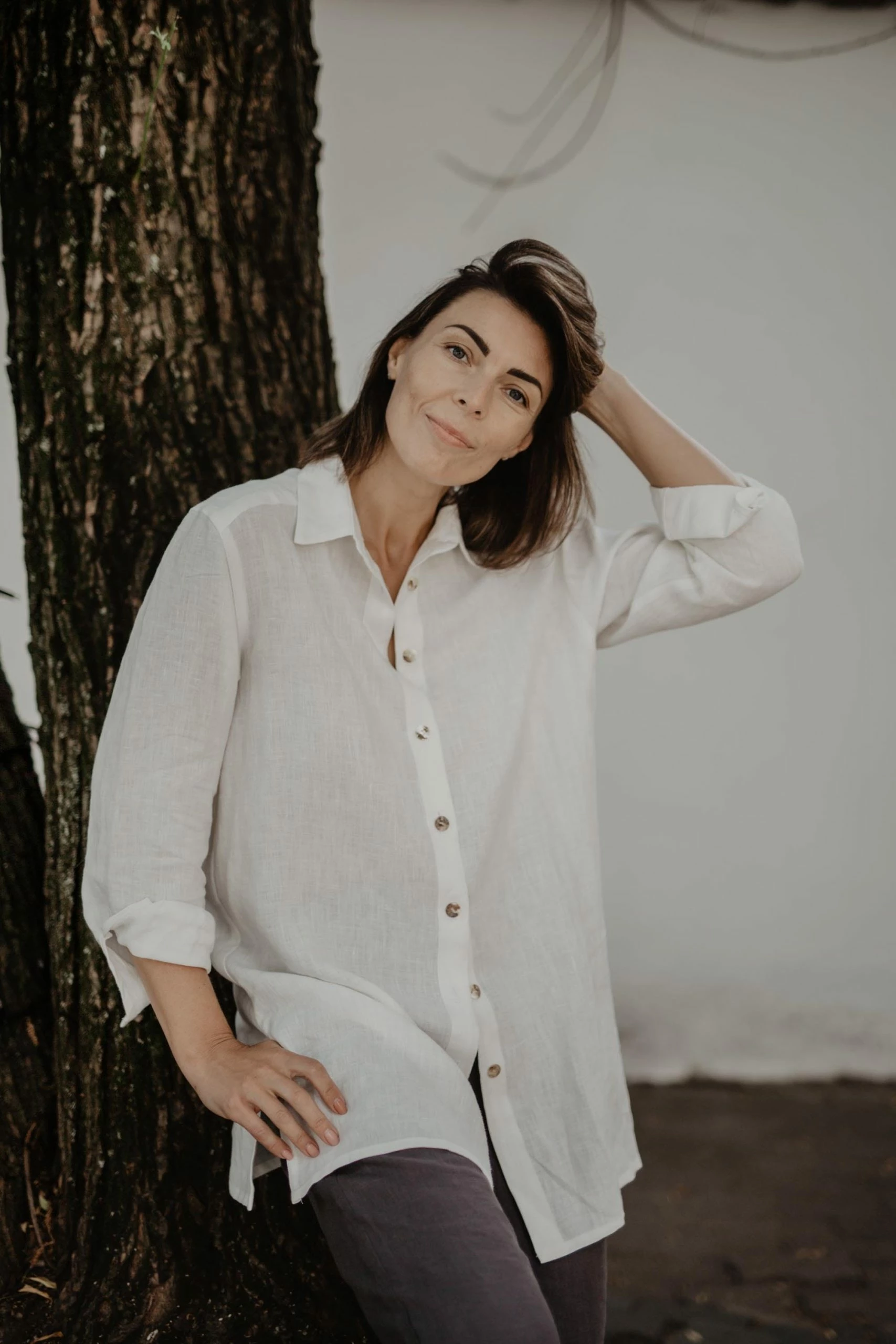 Elegant, loose oversized linen shirt. Ample, with seashell buttons. Perfect for every occasion, you can wear it to work, a picnic or even a night out! Check out the Sahara set to get it with pants.