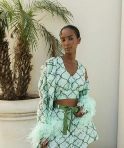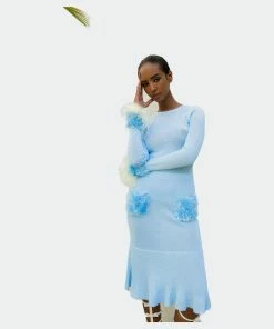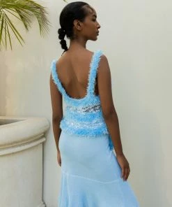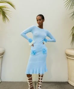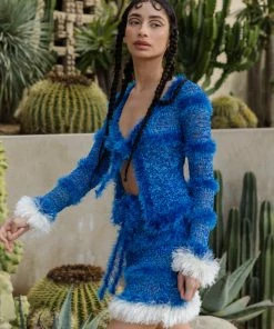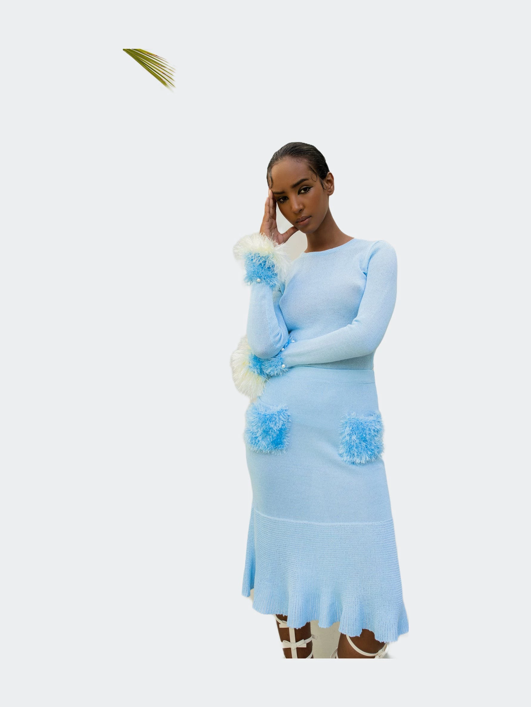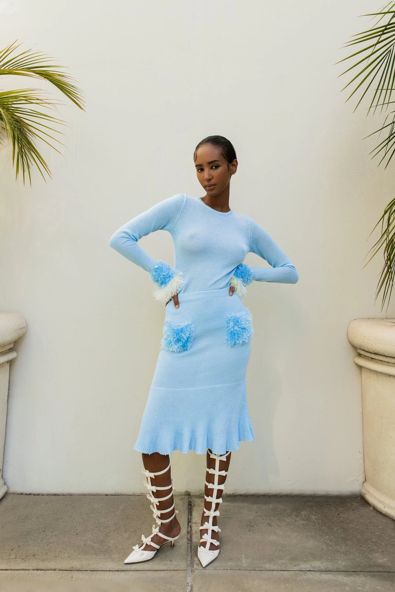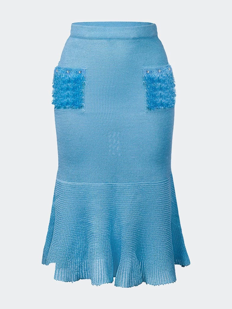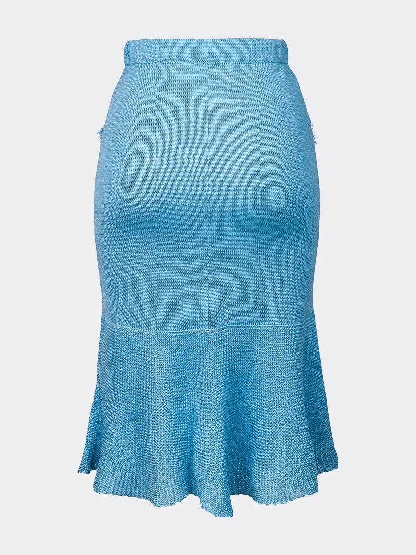 Baby Blue Knit Skirt With Handmade Details cut from lightweight high quality knit with a hint of stretch. Style the skirt with Baby Blue Knit Top and a pair of mules or heels.