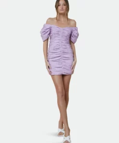 Lavender Cross-Front Top has V-neck. Wear top with everything from skirts to pants. Style it with Lavender Skirt With feathers and pair of mules.