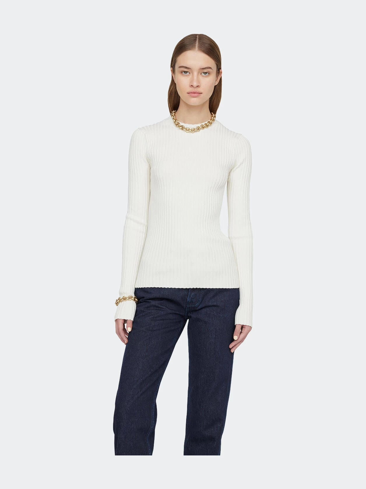An update to the Cecilia Top from the Classics Collection, the Cecily Top is a long-sleeve crewneck crafted in a soft and stretchy cotton-lycra blend with vertical wide-rib detailing.