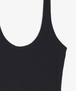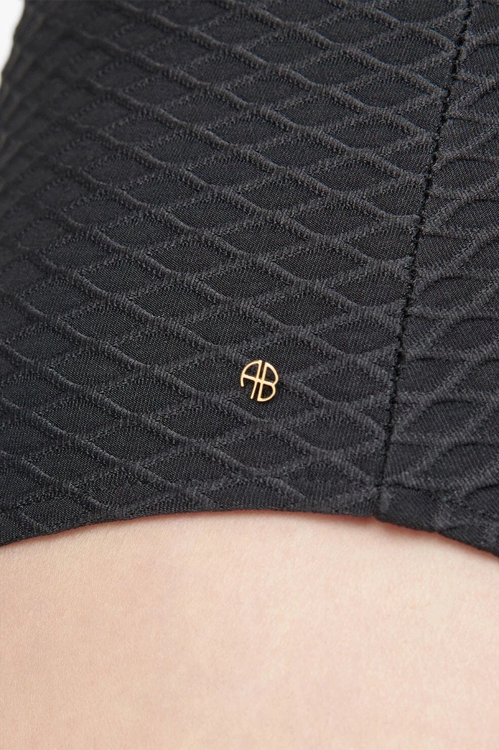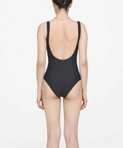 A timeless swimsuit featuring a universally flattering round neckline and low scoop back. The Jace one piece is constructed from a fully-lined recycled nylon-spandex fabrication accented with honeycomb-inspired surface texture.