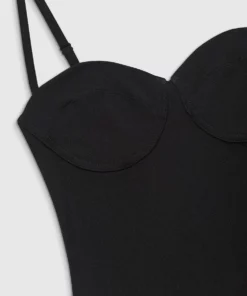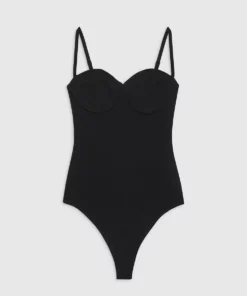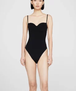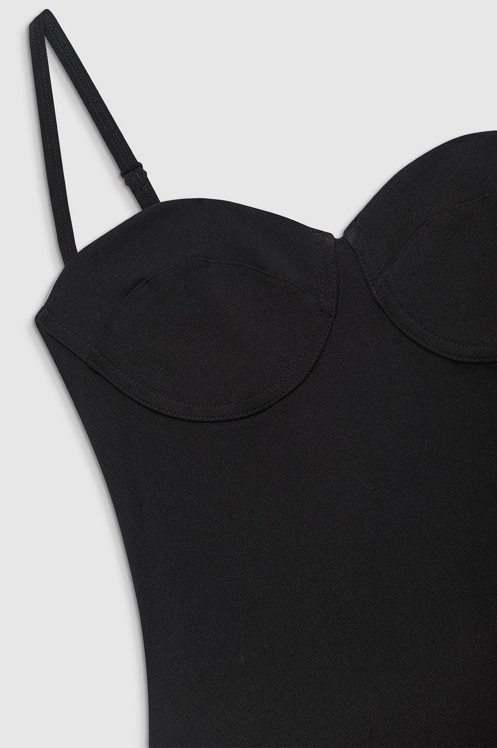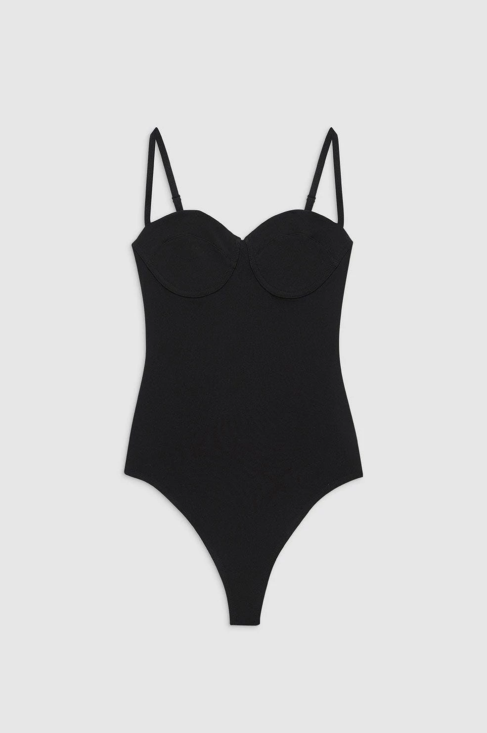 The Via Bodysuit from Anine Bing sport is a versatile one-piece crafted in a compressive fabrication that dries fast and wicks away moisture. This balconette-inspired silhouette features fully-lined underwire cups for added support and adjustable spaghetti straps for a customizable fit. Finished with a snap closure at the base.