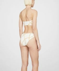 A bandeau-style bikini top constructed from a fully-lined recycled nylon-spandex fabrication elevated in a cream and tan link print. Pair the Viv Bikini Top with the coordinating Viv Bikini Bottom to complete the look.