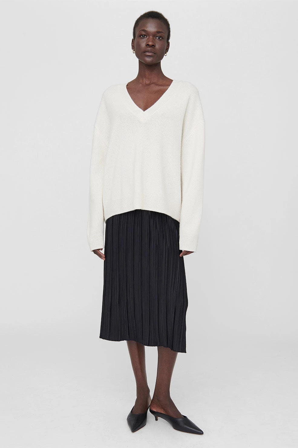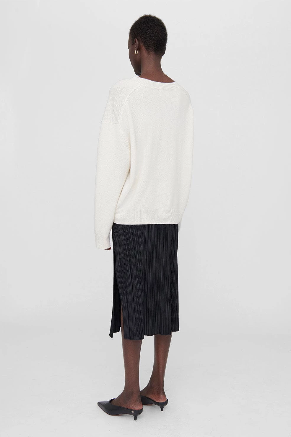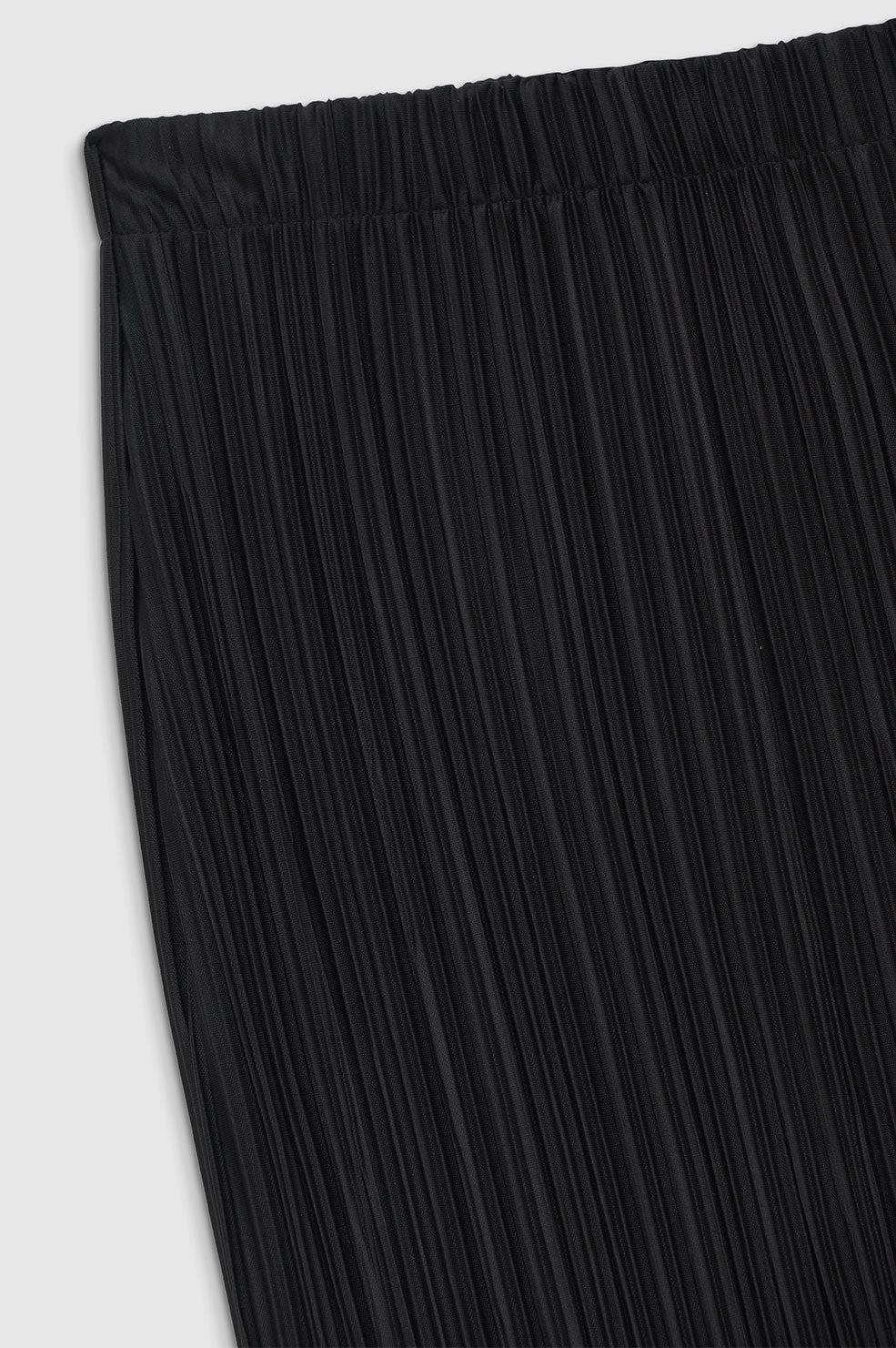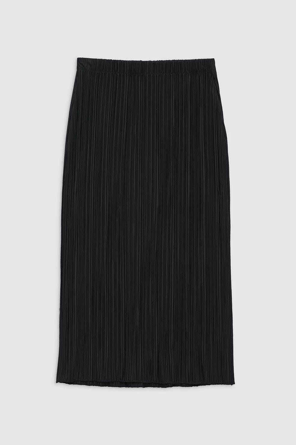 The Yara Skirt is made from a vertical pleated knit fabrication in black. Its pencil silhouette features an elasticated waistband, sitting high at the waist and falling just below the knee. Finished with a side slit. The Yara Skirt is cut for a close fit with a mid-length hem.