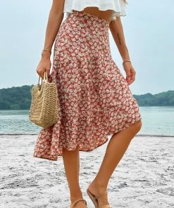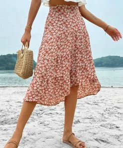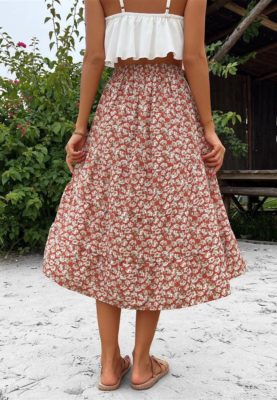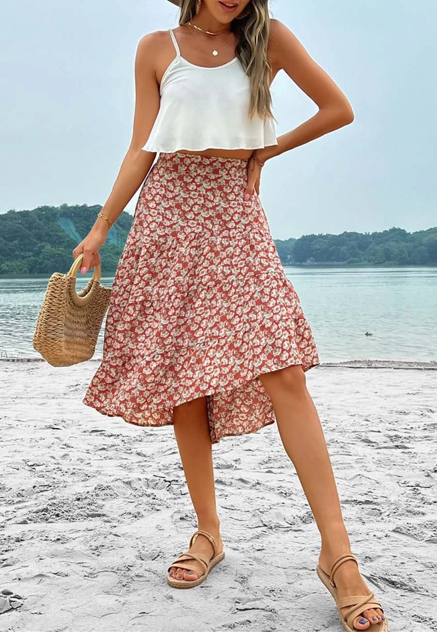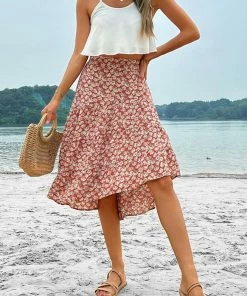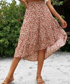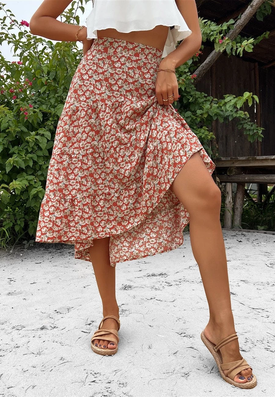 The Anna-Kaci skirt is detailed with a unique asymmetrical hem. Features a fun print, high waist, flowy skirt, and knee length. Pair it with a tank top and sandals for a fabulous look.
