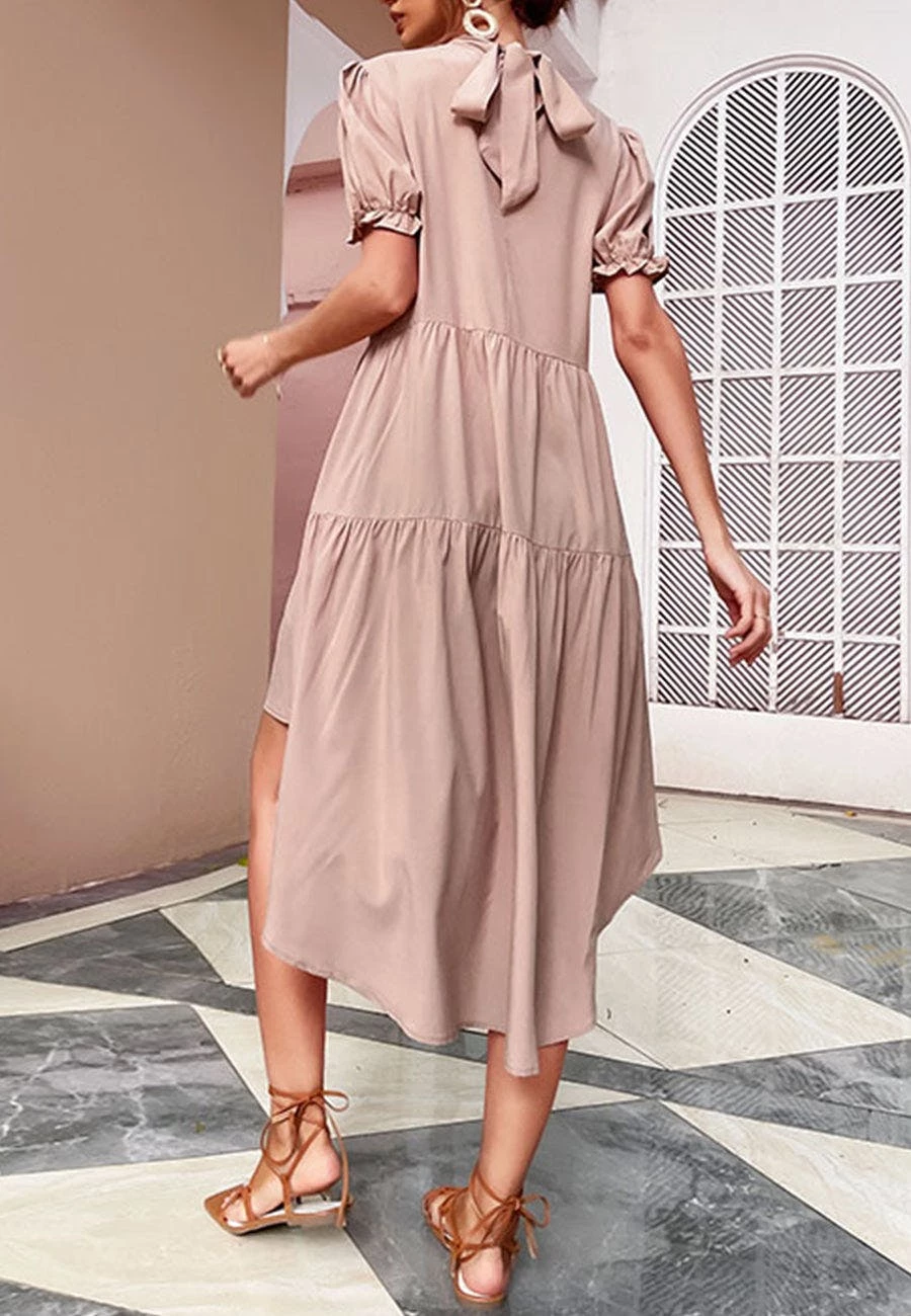 The Anna-Kaci dress is detailed with a feminine ribbon back design. Pair it with sandals and dainty accessories for an exquisite look.