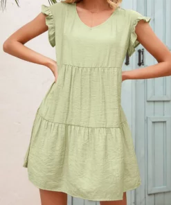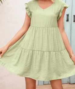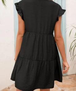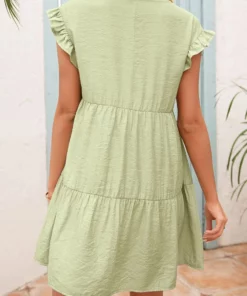 The Anna-Kaci tunic dress is curated with the ruffle details from the trim of the short sleeves to the tiered layers that run from the top to the bottom of the flowy flounce. Each dress is light and comfortably airy for all day wear in the sun. Pair the dress with your favorite sandals, hat, and sunglasses for an easy summertime look.