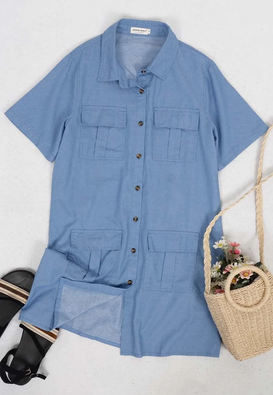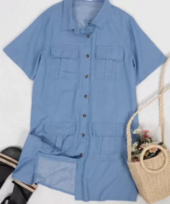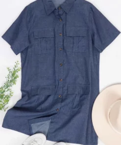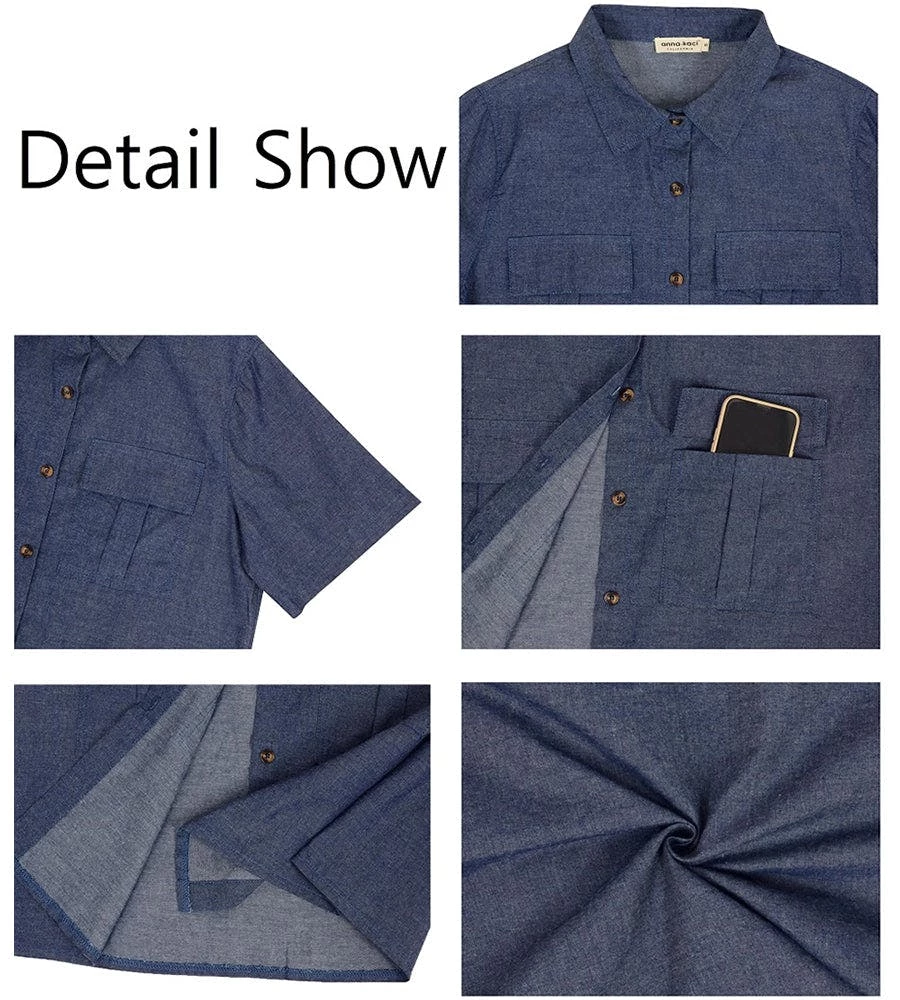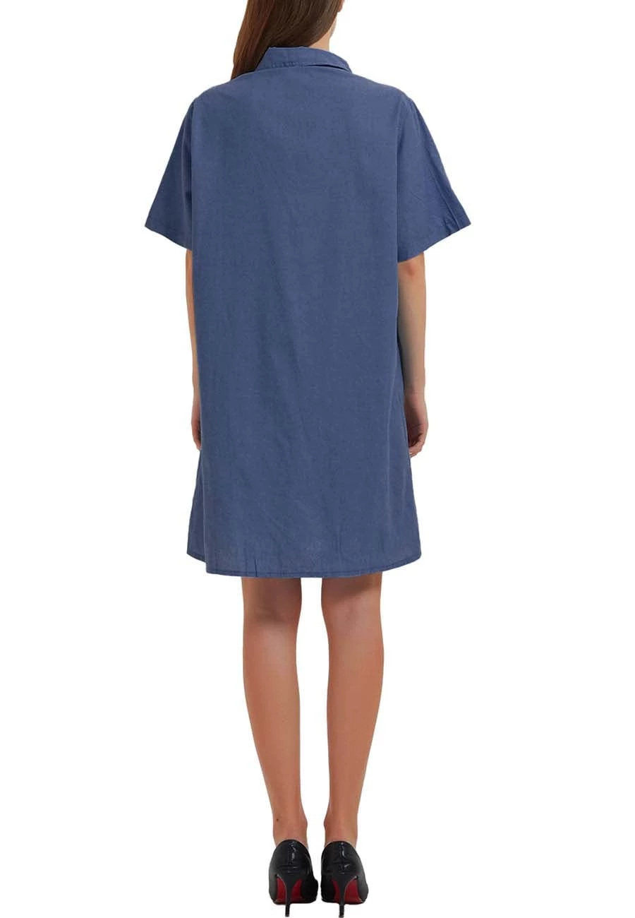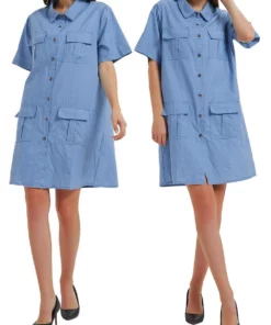 – Soft & Lightweight: This dress details a relaxed loose fit and a soft inner lining for comfort! The material is super breathable for all day wear.- Details: This stunning front button down dress features 4 front pockets, a flowy a-line silhouette, a denim material, short sleeves, turndown lapel collar, above the knee length, no stretch, and a minimalist look.- Matching: Style this beautiful denim dress with cute sandals, stunning accessories, and a straw sun hat for a summertime look. Simple sneakers and a satchel bag will also work nicely with this casual dress.- Occasions: This dress is great for any occasion! Wear it to the office, to the beach, to a party, a club, a concert, or a casual wedding. This chic dress is very versatile in its possibilities.