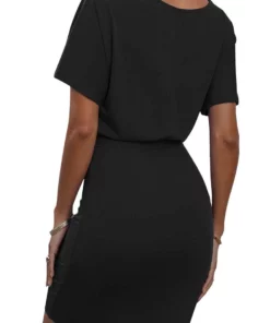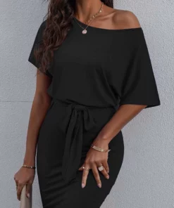 The Anna-Kaci Dress is detailed with a classic solid color.