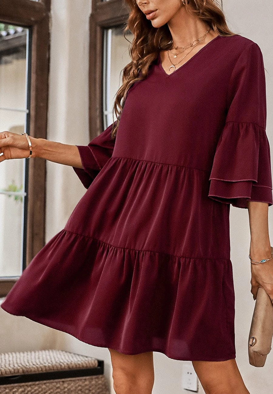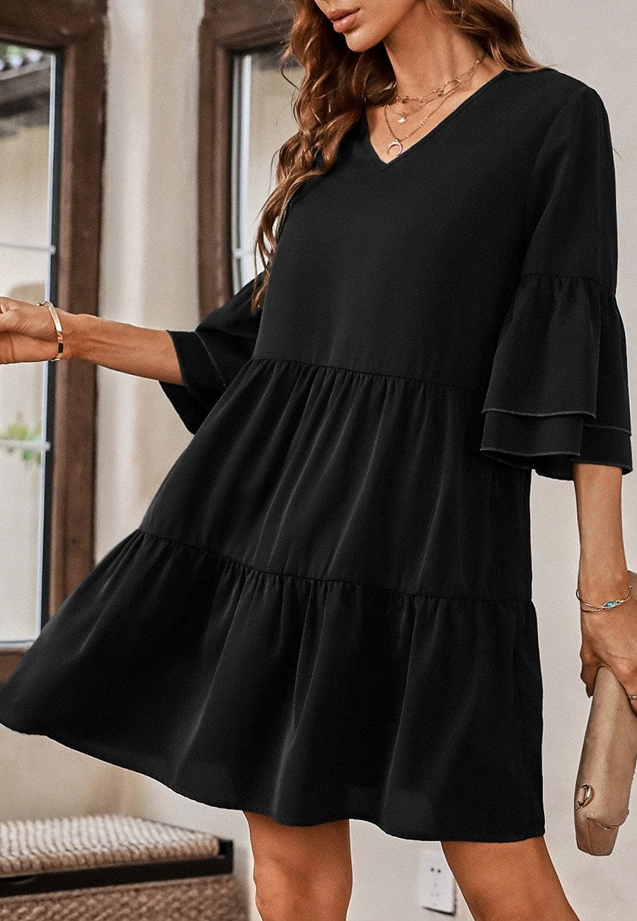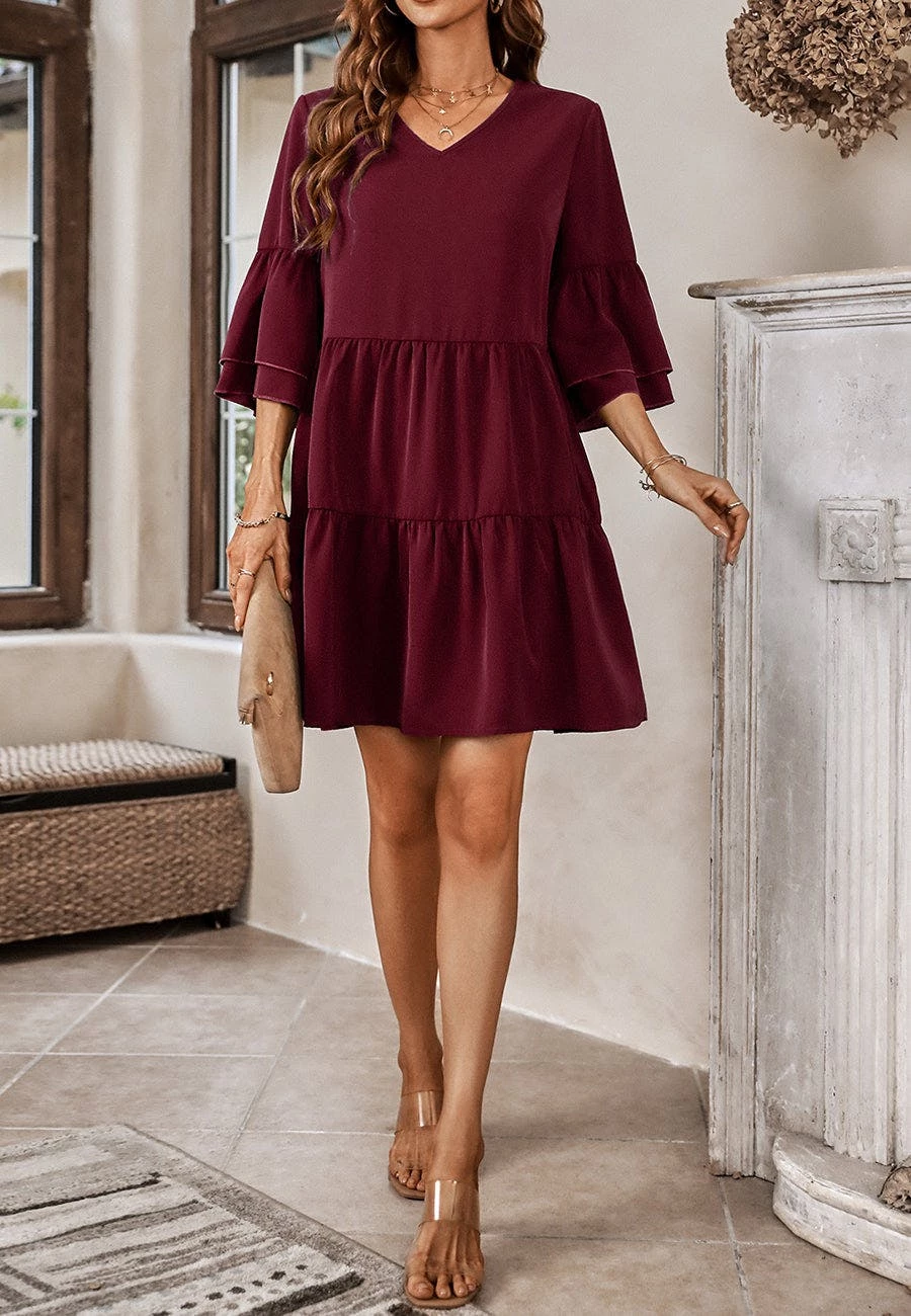 The Anna-Kaci Dress is detailed with gorgeous ruffle sleeves. Pair it with a necklace and boots for a stunning look.