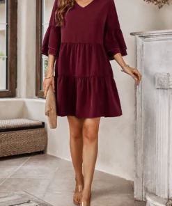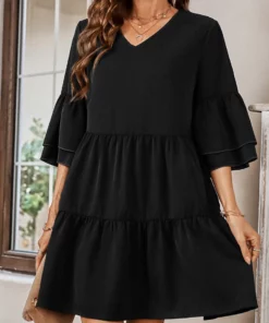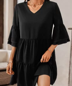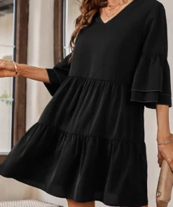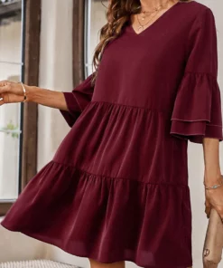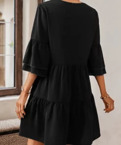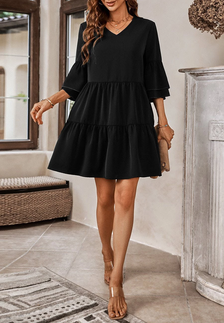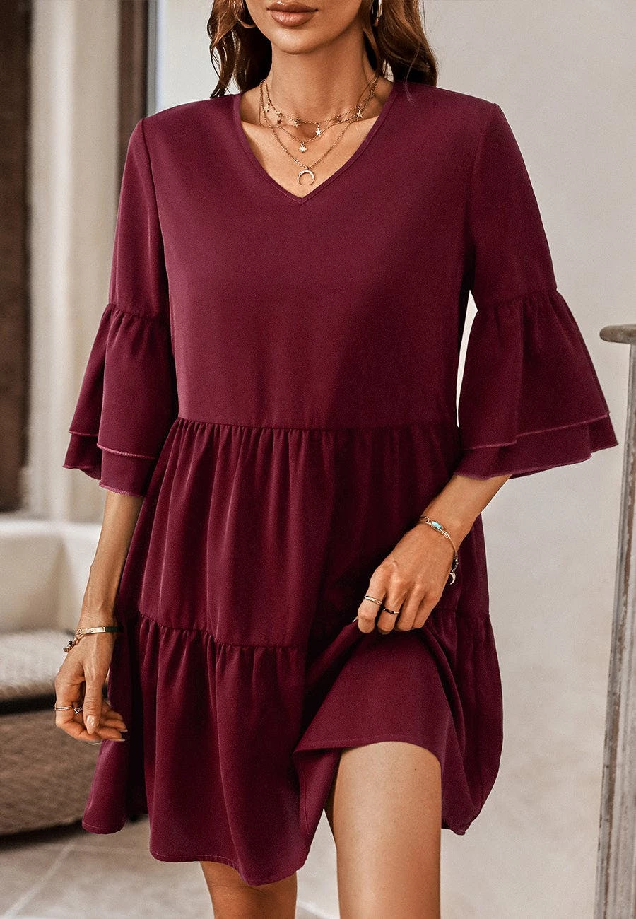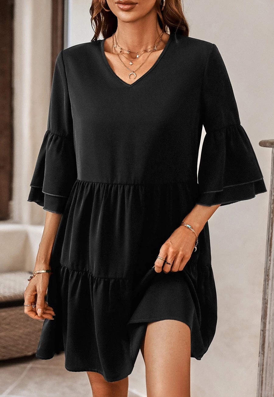 The Anna-Kaci Dress is detailed with gorgeous ruffle sleeves. Pair it with a necklace and boots for a stunning look.