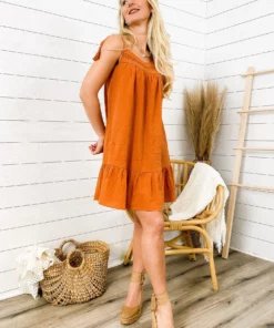 This Cami Dress is detailed with unique tassel adjustable straps, a patterned front square neckline and a simple ruffle flare from top to bottom. The above knee dress is made of a smooth orange fabric blend of 30% cotton and 70% polyester. Incredibly soft and breathable for daily wear in the sun. Easily pair this dress with your favorite leather sandals and summer accessories.