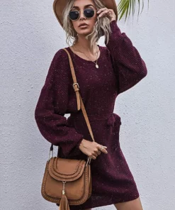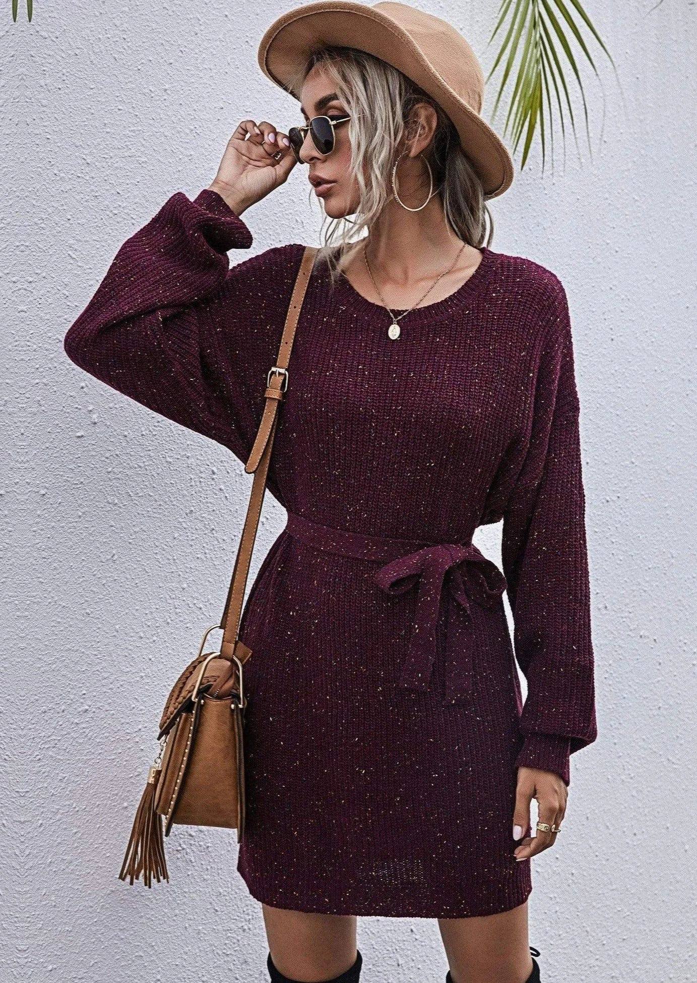 The Anna-Kaci dress is detailed with different types of unique textures and sheen depending on the color of the dress. Features a round neck line, drop shoulder, bishop sleeves, tie waist belt, relaxed fit and an above knee length. Pair it with thigh-high black boots and a statement hat for a gorgeous look.