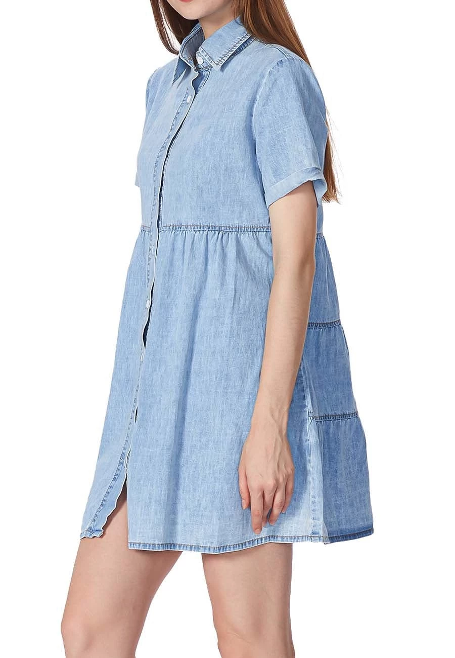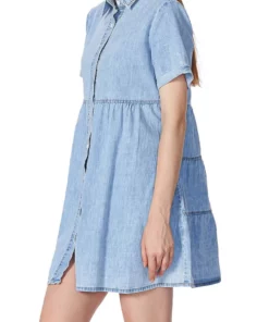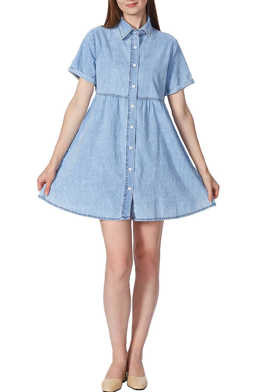 This Lapel Collar Denim Dress is made of denim fabric which is breathable, lightweight, soft, and comfortable. This Button Down Dress for women gives you a wonderful experience all day.This Short Sleeve Jean Dress for women is perfect to match with hoop earrings, a mini necklace, a simple bangle bracelet, a highland bag, a hat, leggings, sandals, heels, boots, etc.Occasions: A Denim Babydoll Dress above knee length is suitable for most events like casual wear, school, party, outdoors, street, holidays, vacations, beaches and womens summer dresses casual. This denim dress for women a must-have piece for your wardrobe.