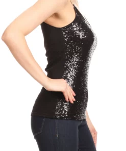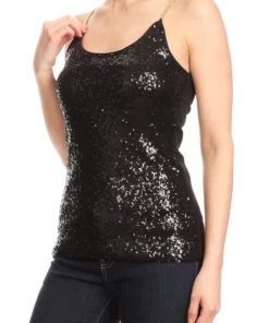 Glitzy sequin camisole style tank top:- A unique scoop neck tank top embellished with shiny metallic colored sequins complimented by rope chain straps.Stretch and breathable back for comfortable wear: – Enjoy comfortable wear throughout the day thanks to the stretchy polyester material. – Breathable solid colored back keeps you cool no matter where you wear this top. – Easy to put on and removePerfect for everyday wear, performing arts, costumes, and more:- An eye-catching twist on a classic style! Everyday can be a special occasion in a sequin covered top. – Use it as vest underneath your office blazer and take right into happy hour after work. – Use it for a a mermaid or unicorn costume and keep it to wear for any casual occasions. With this versatile piece, your styling options are endless.