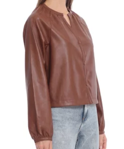 Cottagecore with an edge. Meet faux-ever leather v-neck.