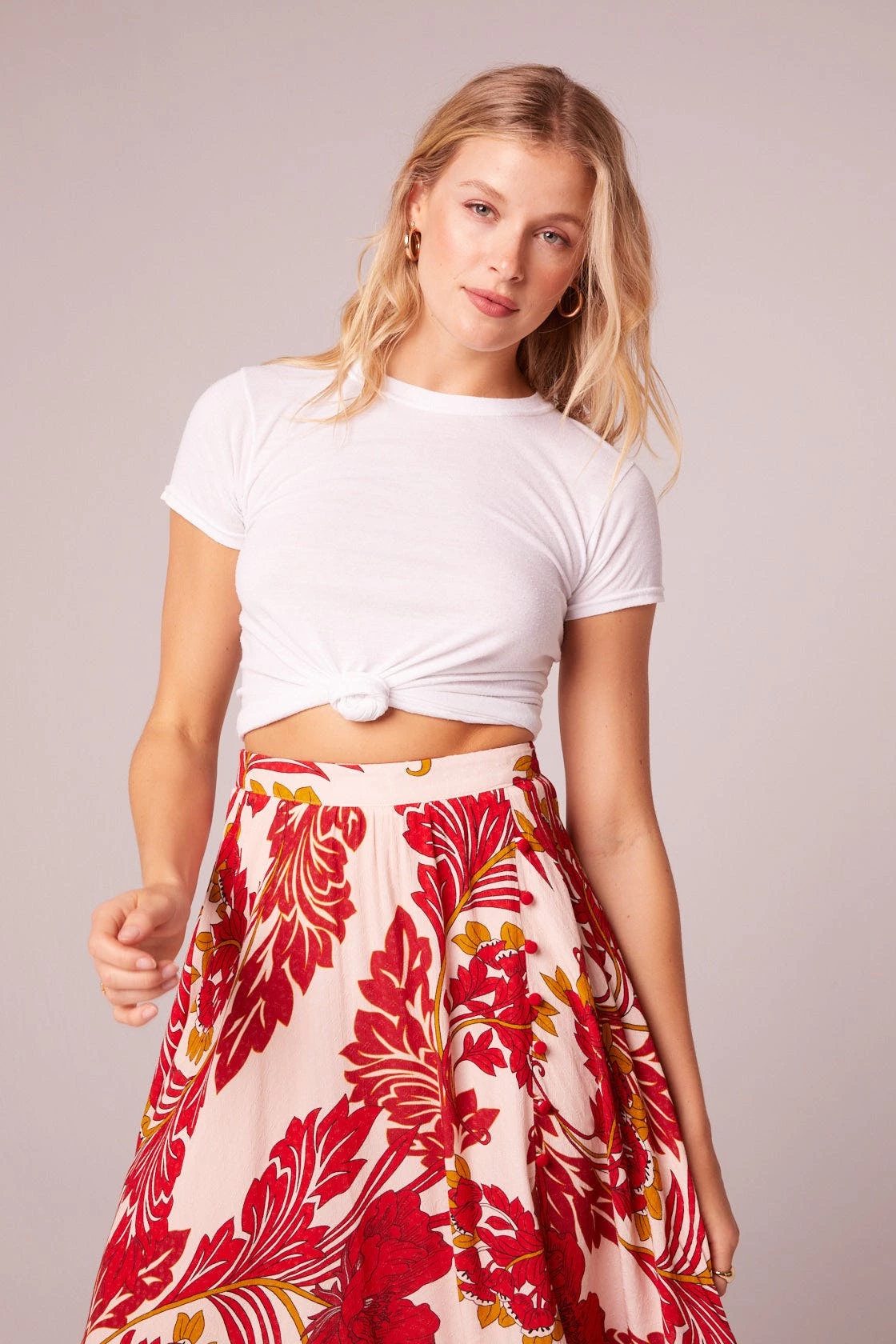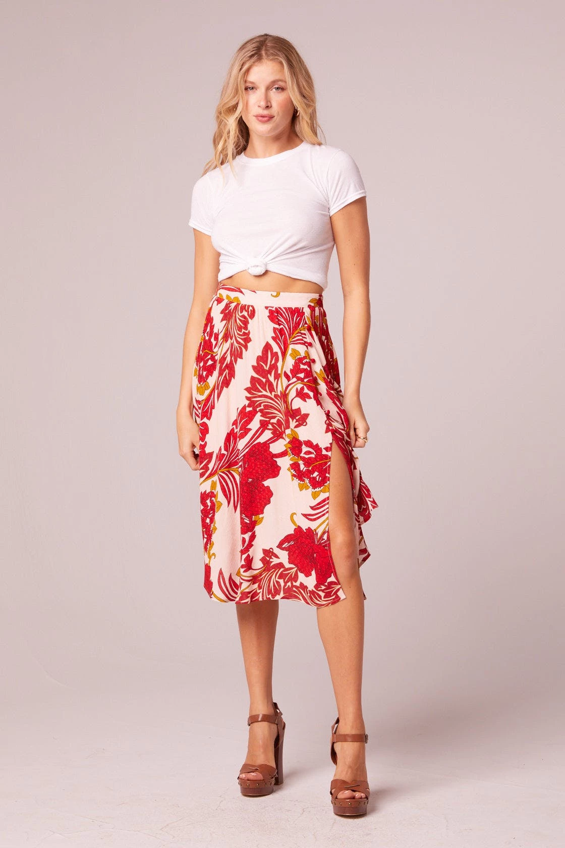 Dainty blooms pattern our getaway-ready tango in the night skirt, made for maximum comfort and a slit for extra attitude.
