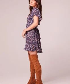 A high crossover waist creates the flattering shape of this Coraline mini dress, framed by flutter sleeves and covered in a dainty floral print.