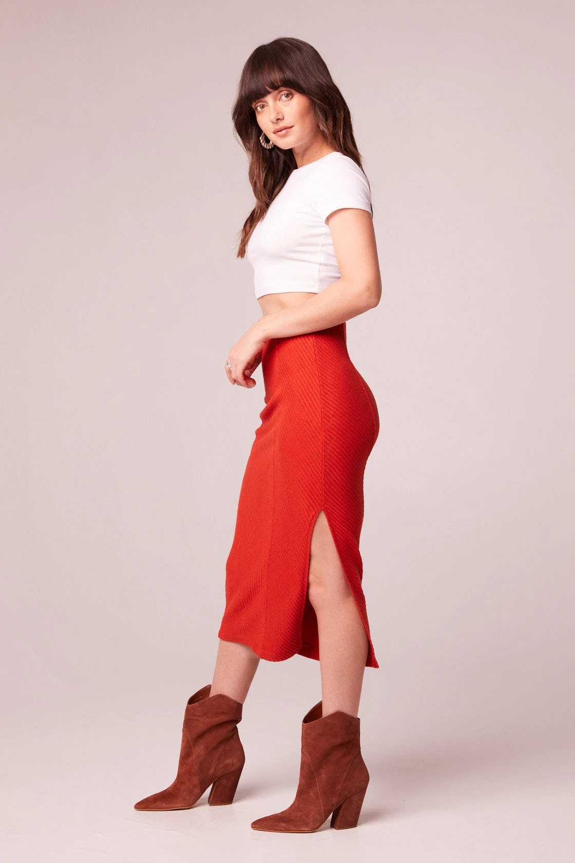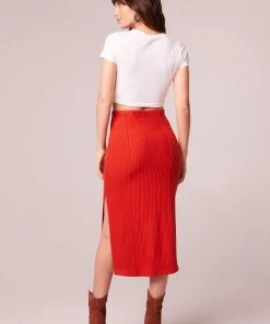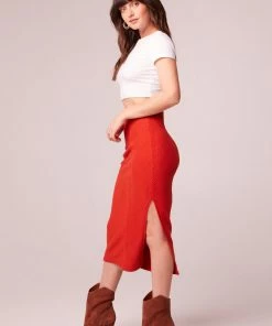 Form flattering panels make up the ribbed knit Renee pencil skirt, complete with slide slit for ease of walking.