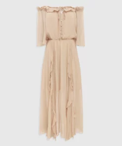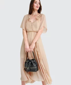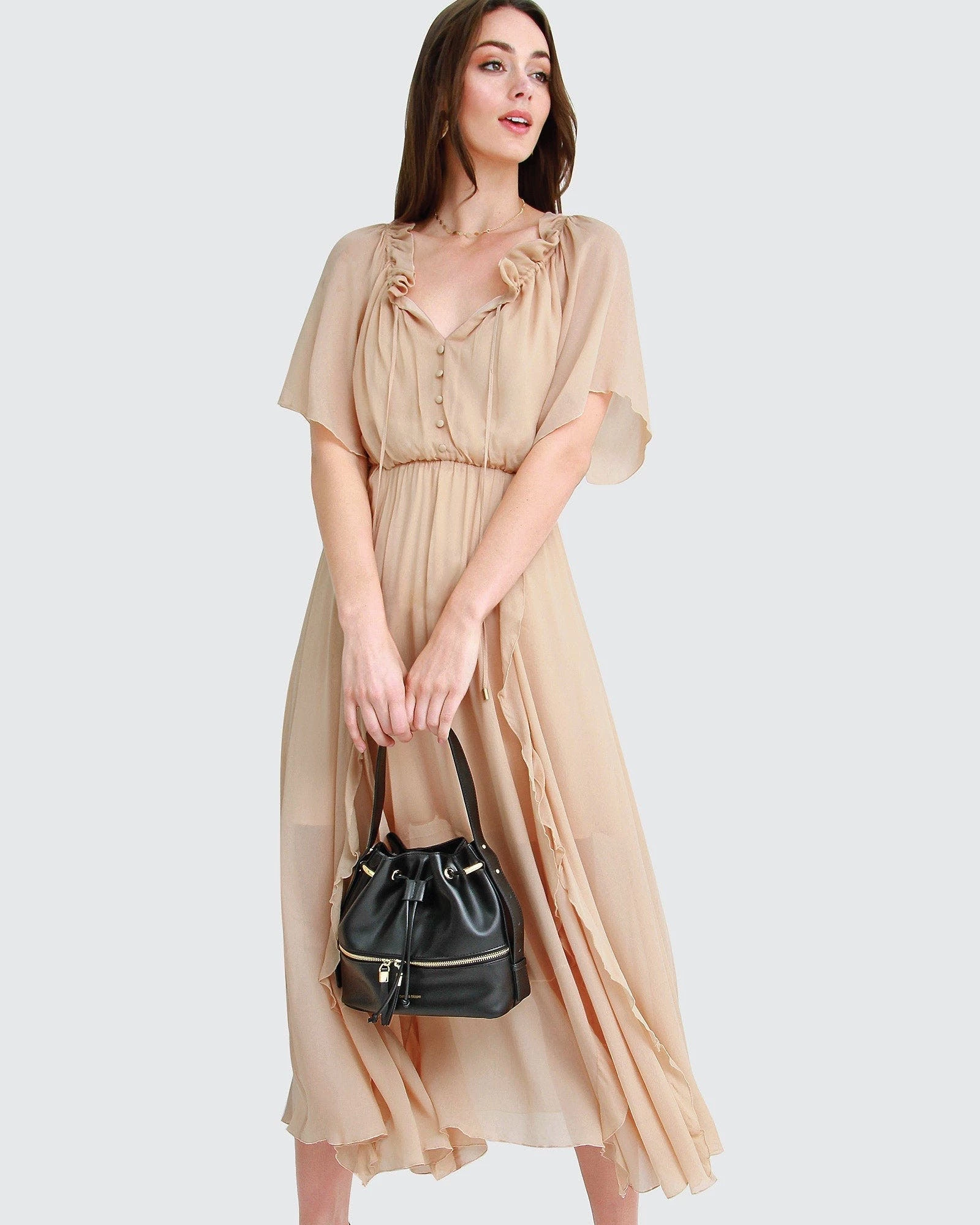The amour amour ruffled midi dress is an ultra bohemian dress is versatile with the on or off the shoulder look. Pair it with sandals for the beach, or glam it up with heels and statement earrings.