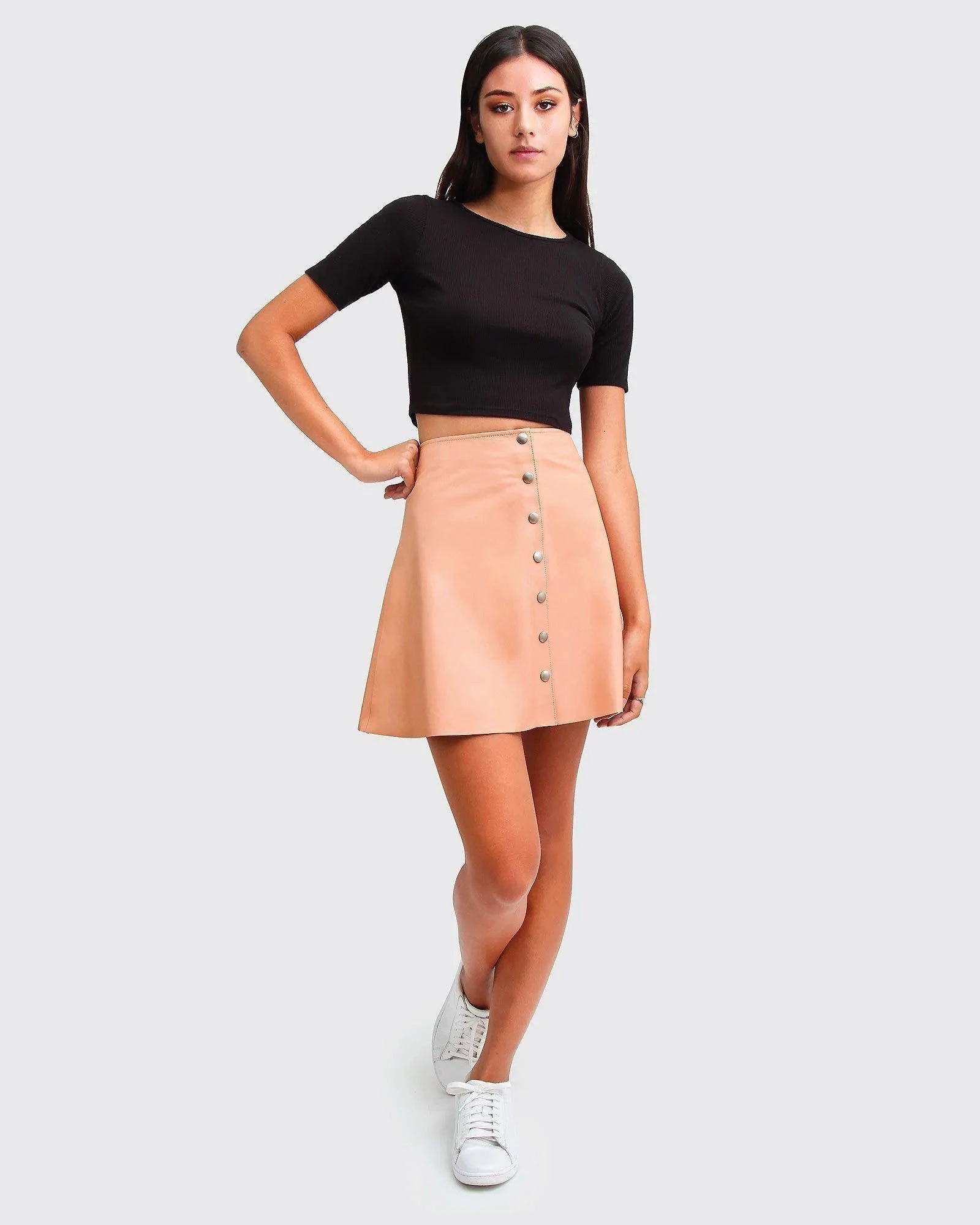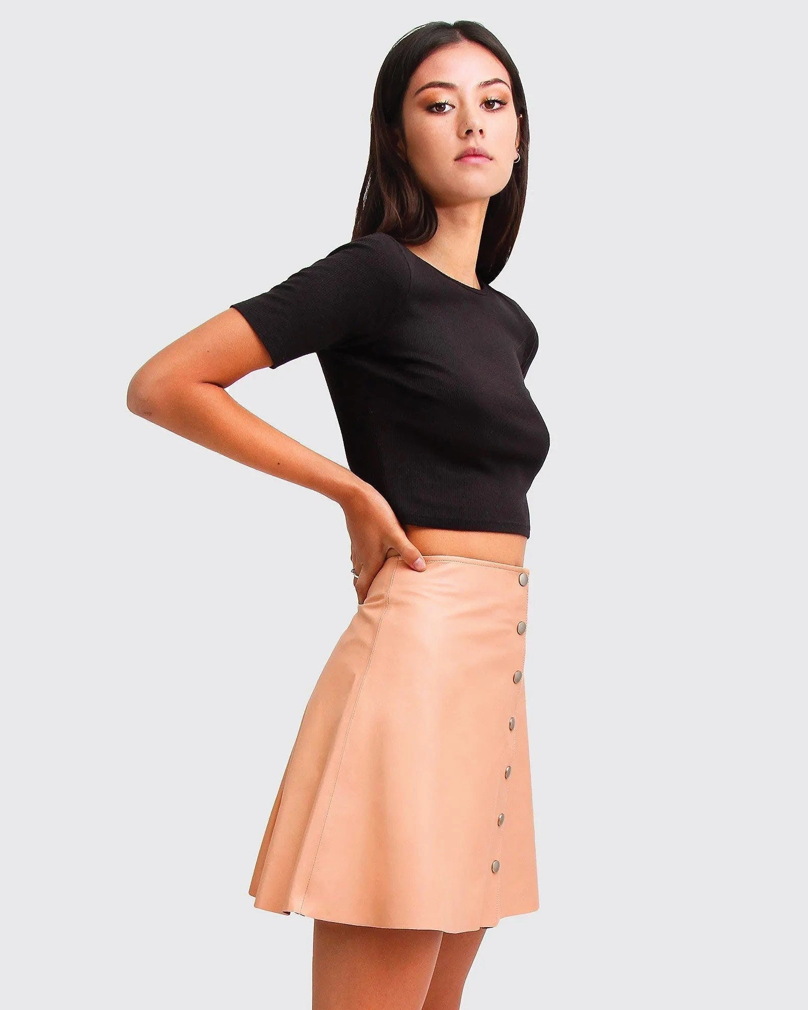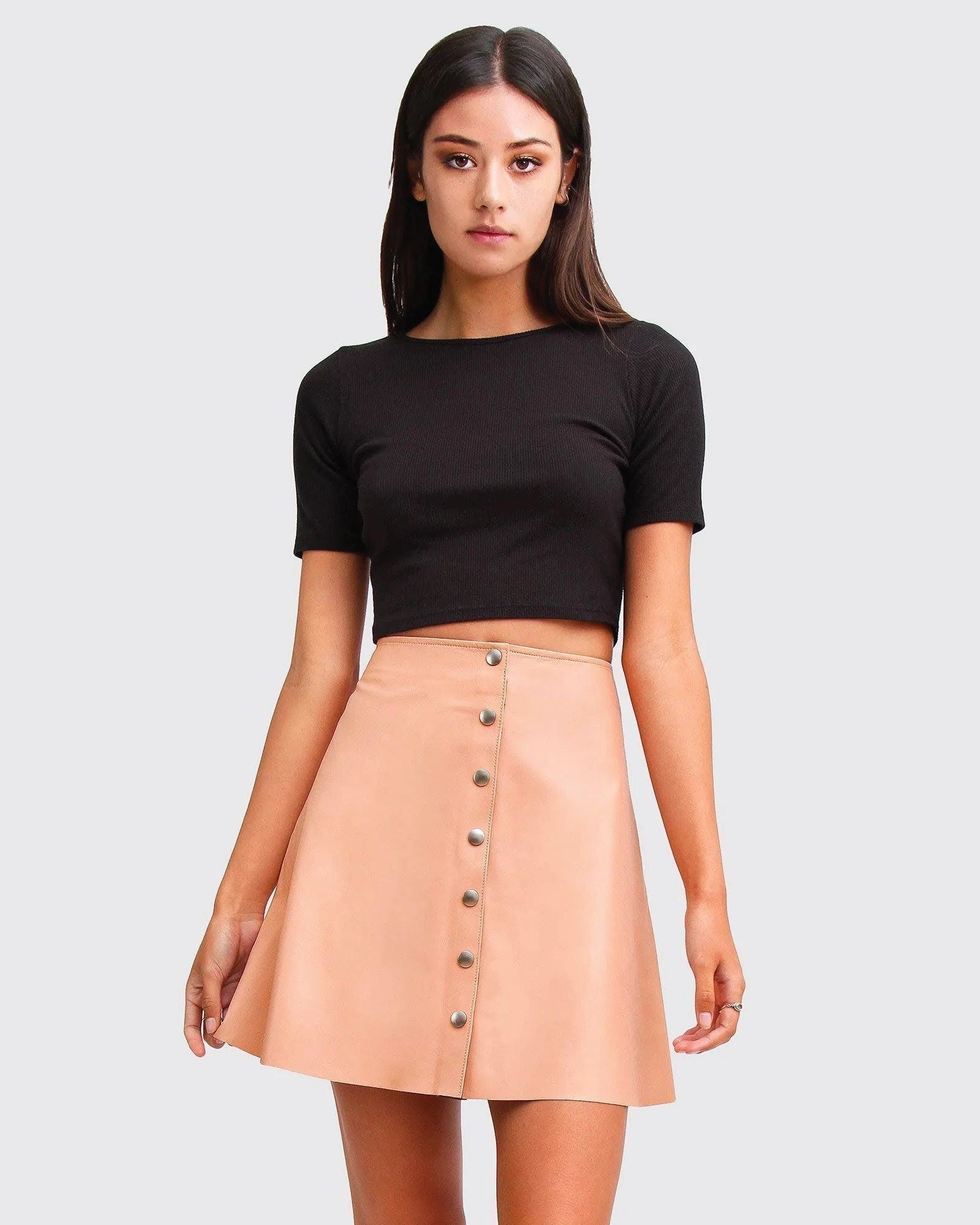 The into the woods leather mini skirt by belle & bloom is the perfect staple piece to add to your wardrobe this season. In a feminine a-line silhouette, this classic style features a leather construction, high waist and delicate snap button front closure.