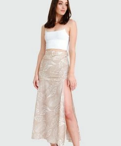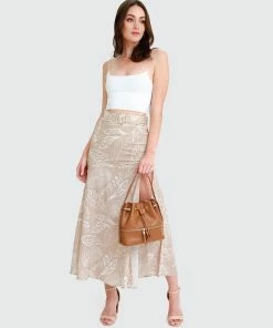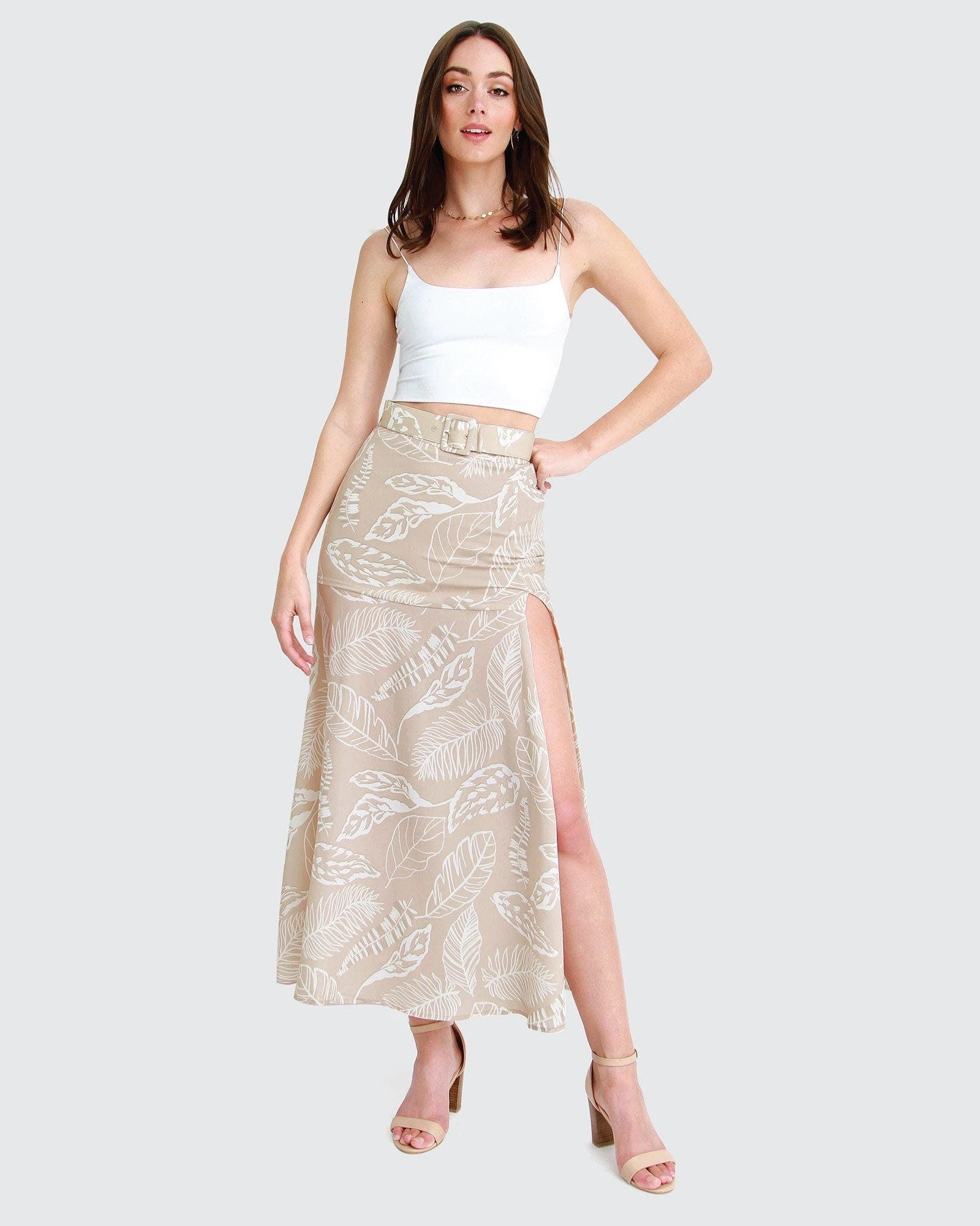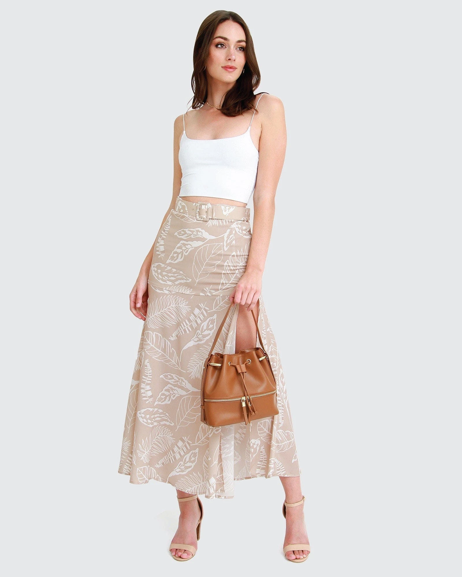 A sultry and sophisticated piece, the ocean drive belted maxi skirt has a bias cut waistband for natural stretch to emphasize that hourglass shape.