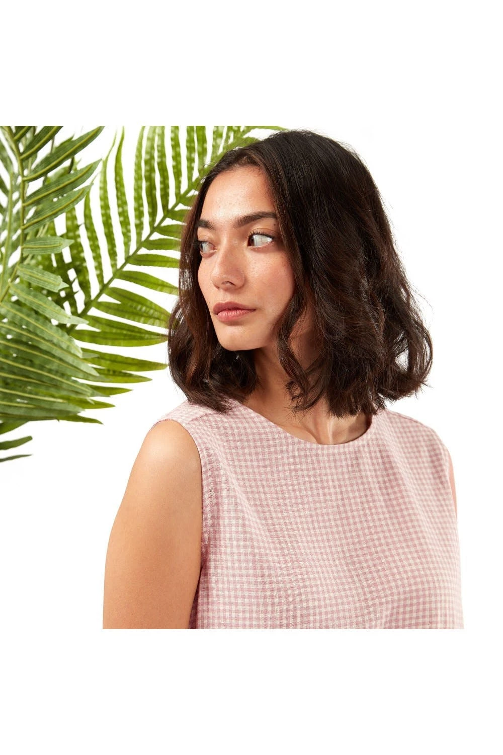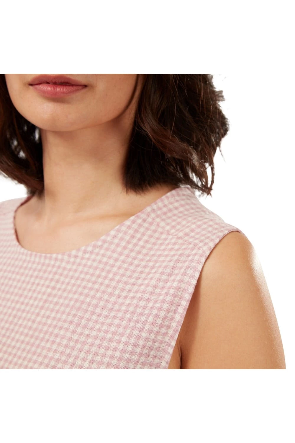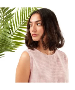 – Design: Checked- Fabric: Brushed, twill- Fabric technology: NosiBotanical- Insect repellent, lightweight- Fastening: Button- Neckline: Round neck- Sleeve type: Sleeveless- Pockets: 2 side pockets, 1 hidden pocket, zip