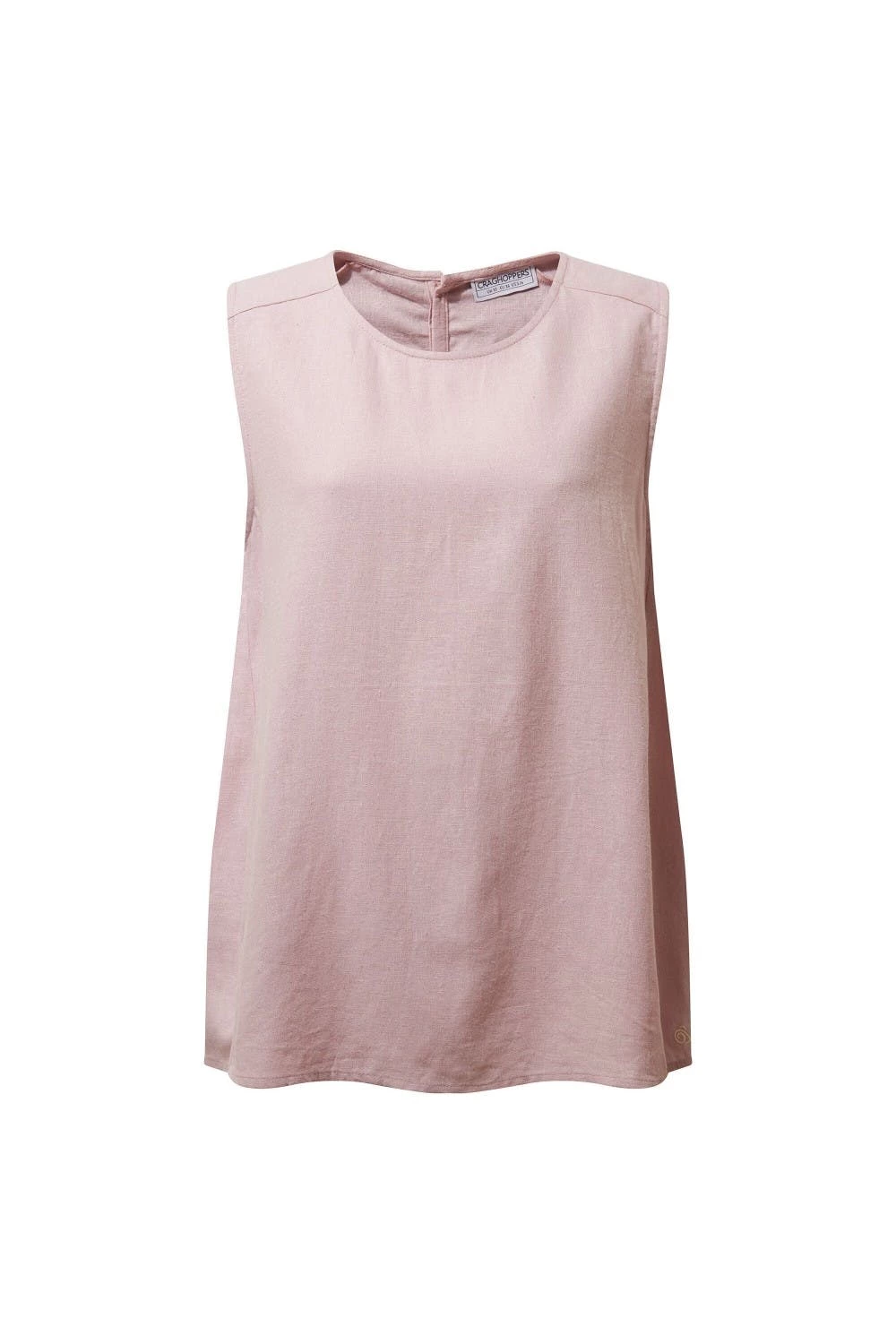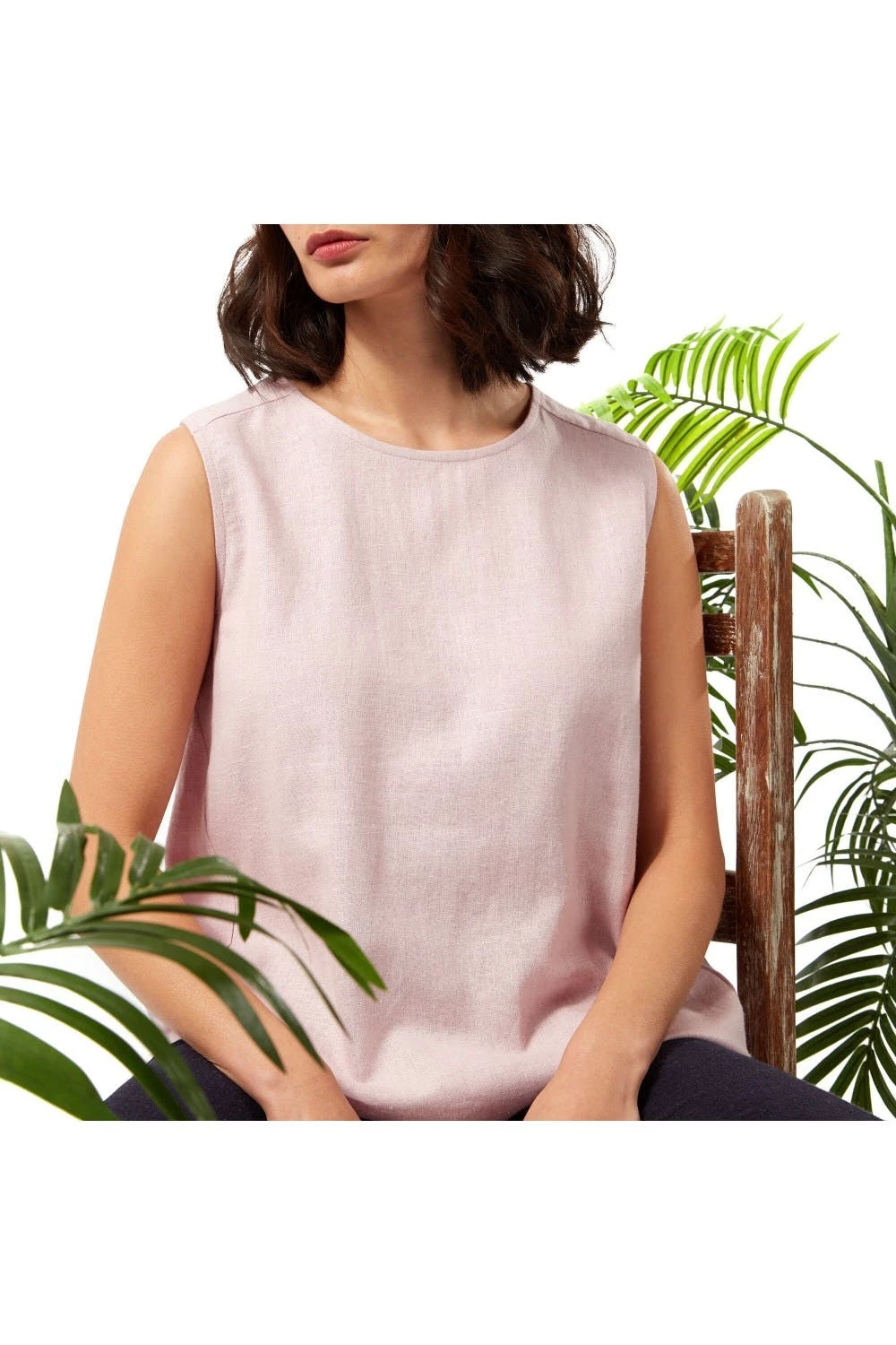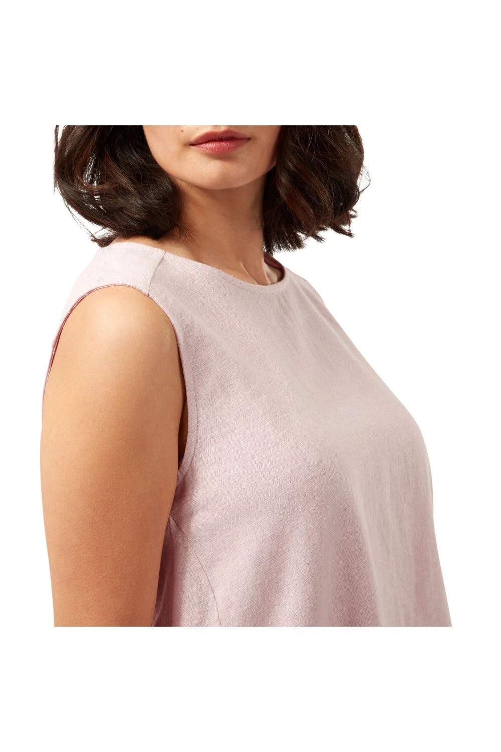 – 55% Linen, 45% Cotton.- Design: Plain.- Fastening: Button.- Fit: Regular.- Neckline: Round Neck.- Sleeve-Type: Sleeveless.- Insect Repellent, Lightweight.- Fabric Technology: NosiBotanical.- Length: 25in.- Sustainability: Better Cotton Initiative..- Gender: Women