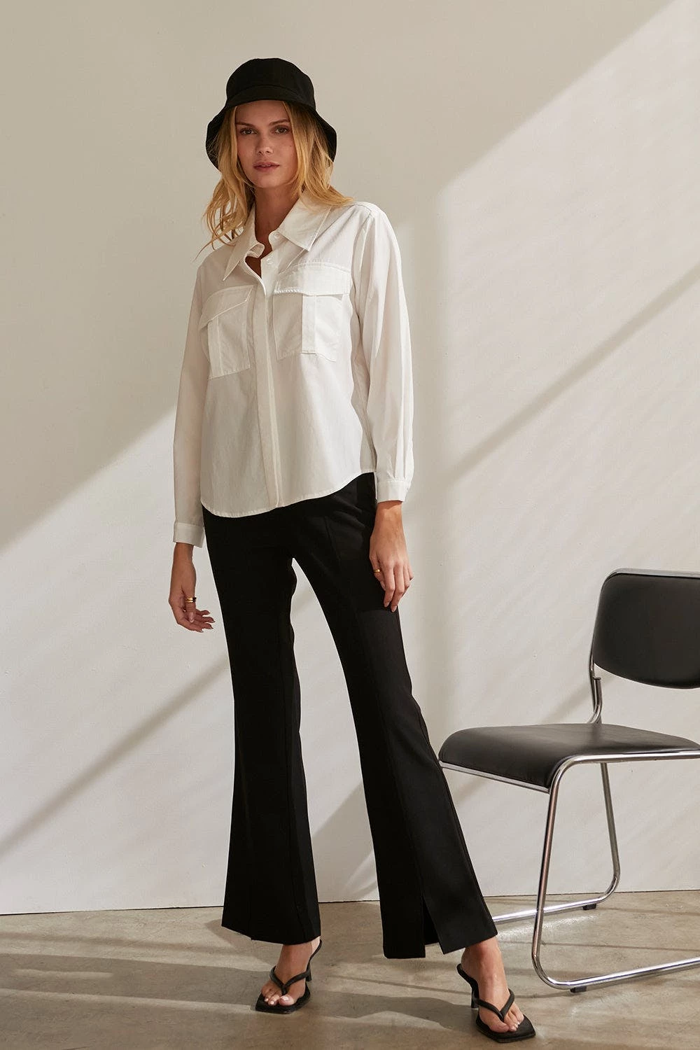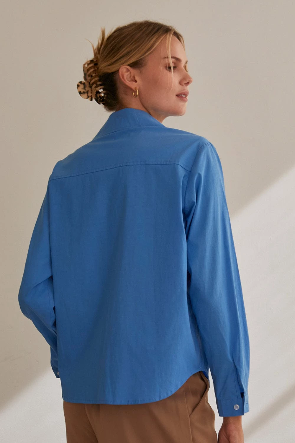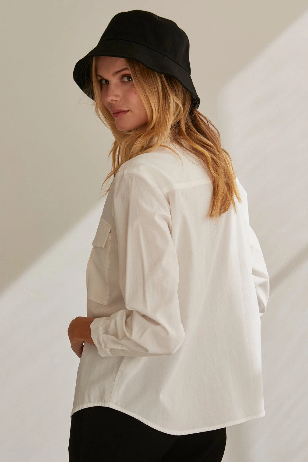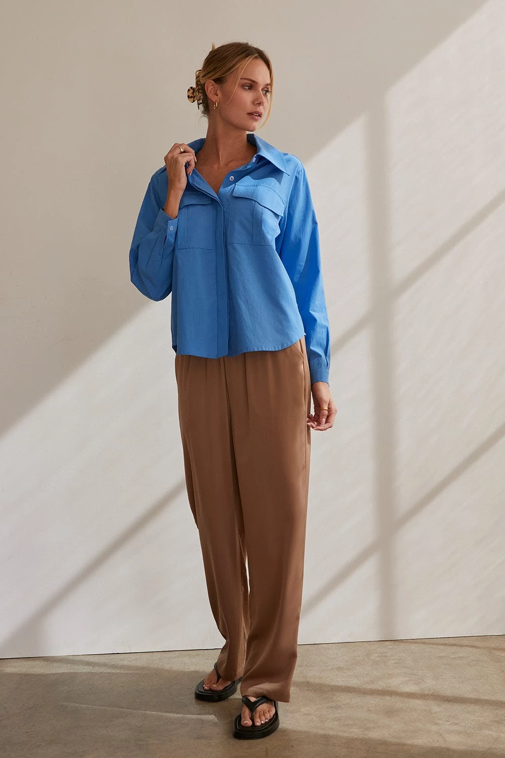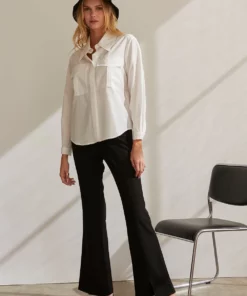 – Cora button up utility blouse- Two front utility pockets- Front button closure- Hidden button placket- Cuffs with button closure