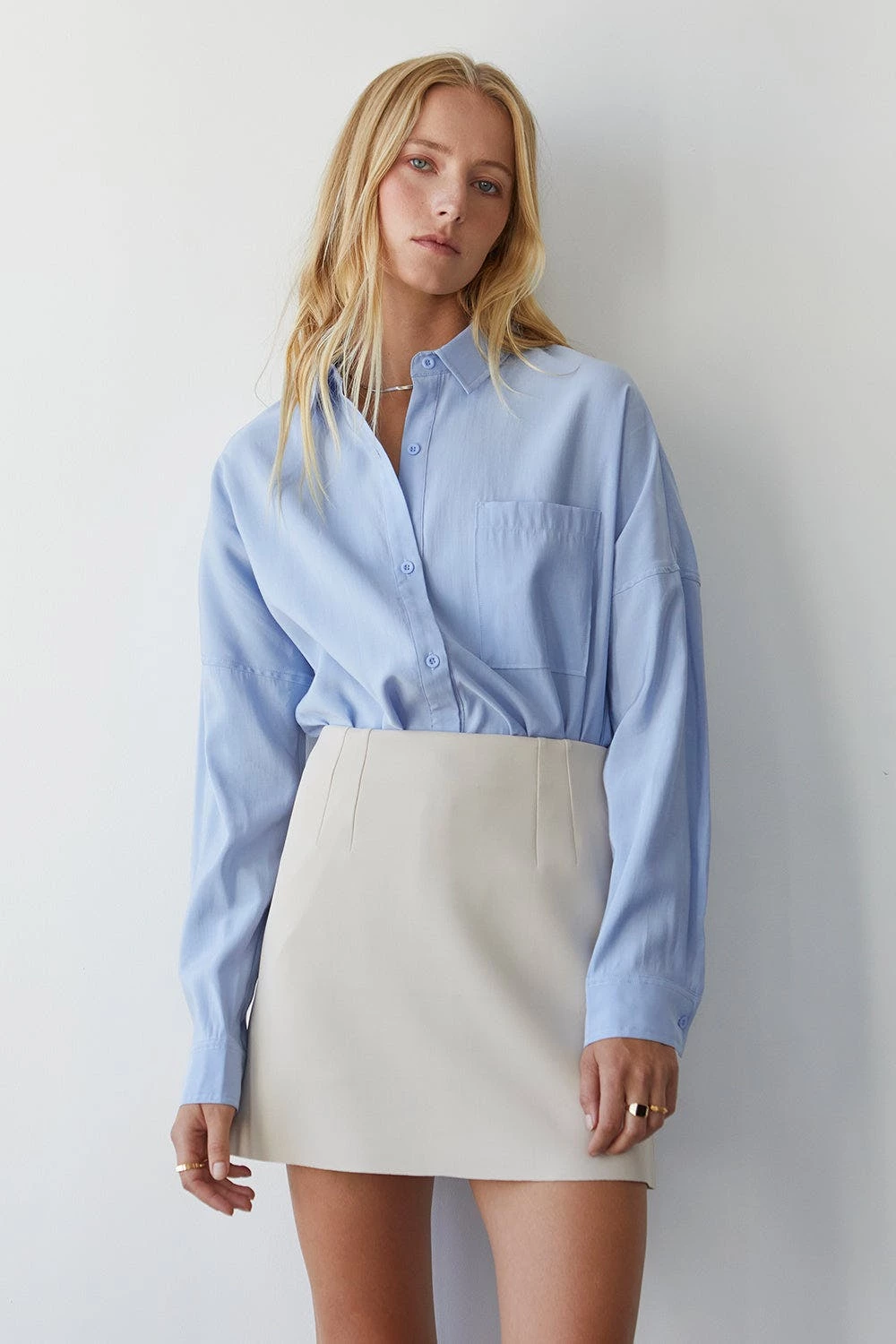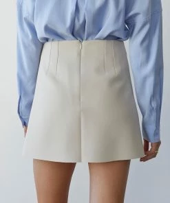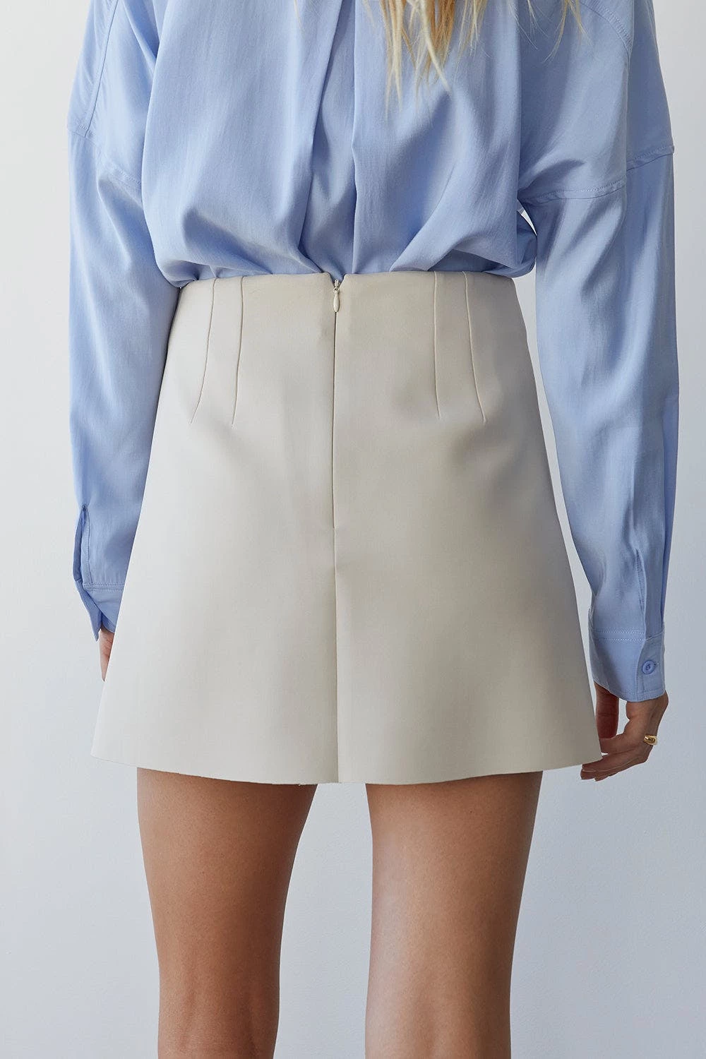 – Clean finished waist with self facing- Clean cut hem- Front and back dart detail- Back zipper closure