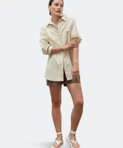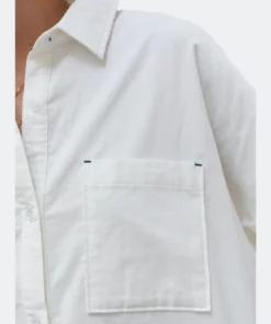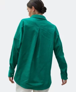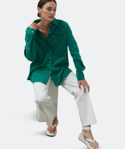 A must-have for your minimalist wardrobe, this lightweight corduroy button front shirt is intentionally cut in an oversized fit with contrast thread tacking detail around the buttonholes and seams.