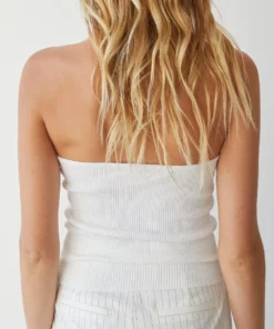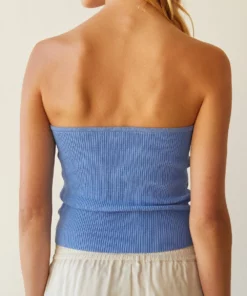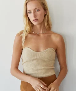 – Rib knitted- Corset styled top- Elastic neckline- Fit to bodice silhouette
