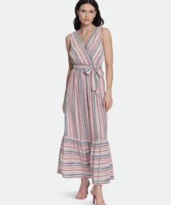 Meet Aramina, a sweet striped maxi. We love her beach sunset inspired colors and wrap bodice details!