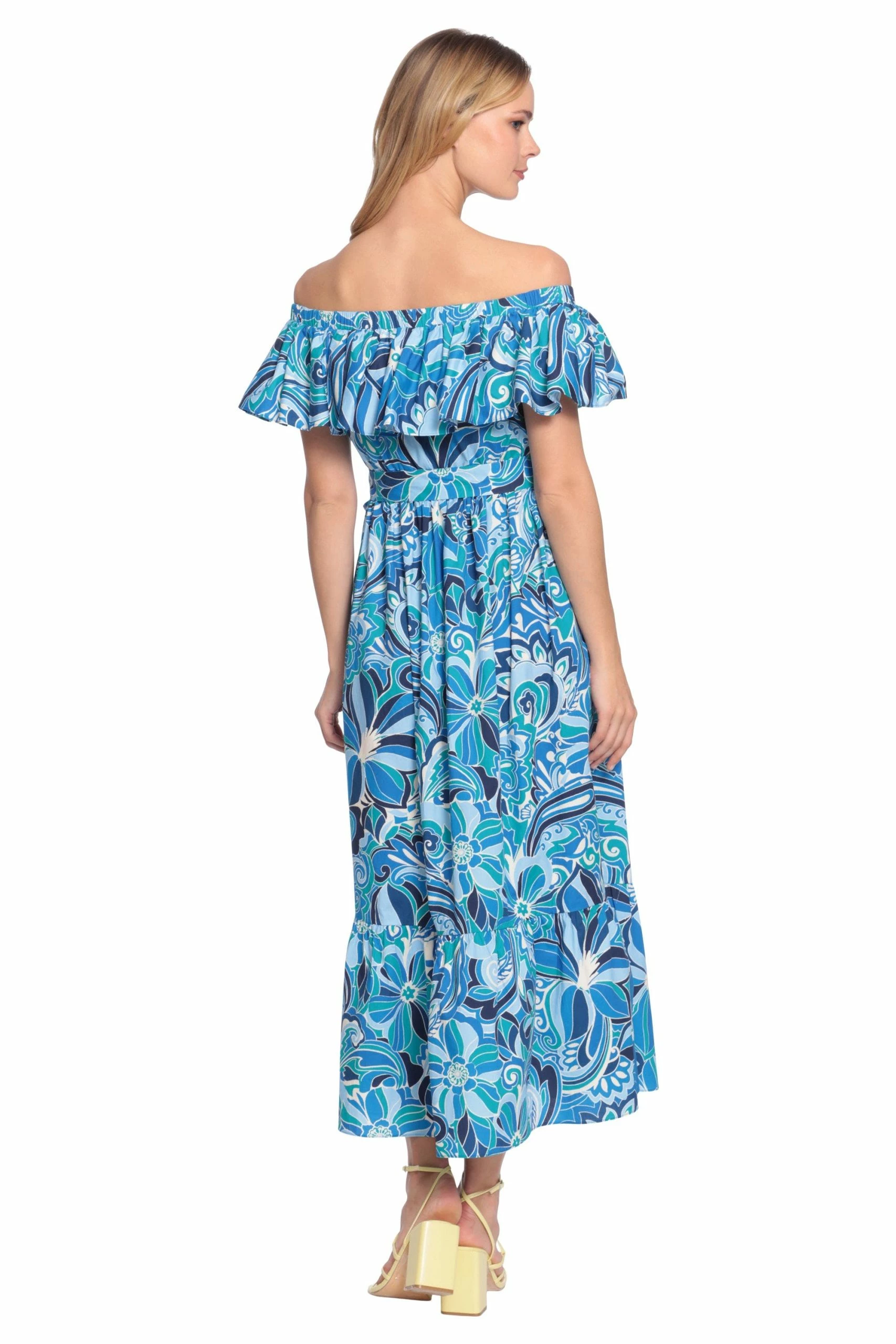 Maison is a paisley inspired maxi with tons of attitude. We love her off-the-shoulder neckline and sweet waist sash.