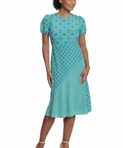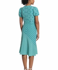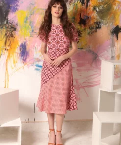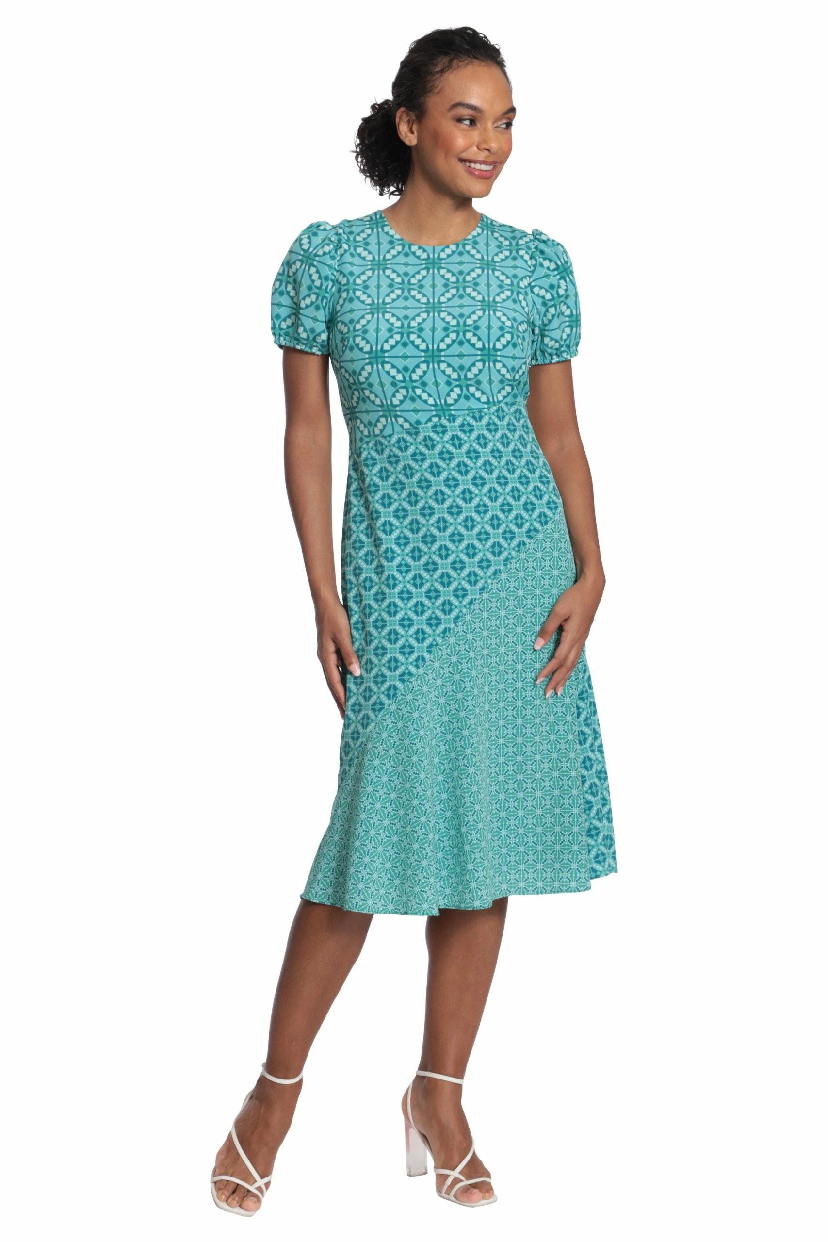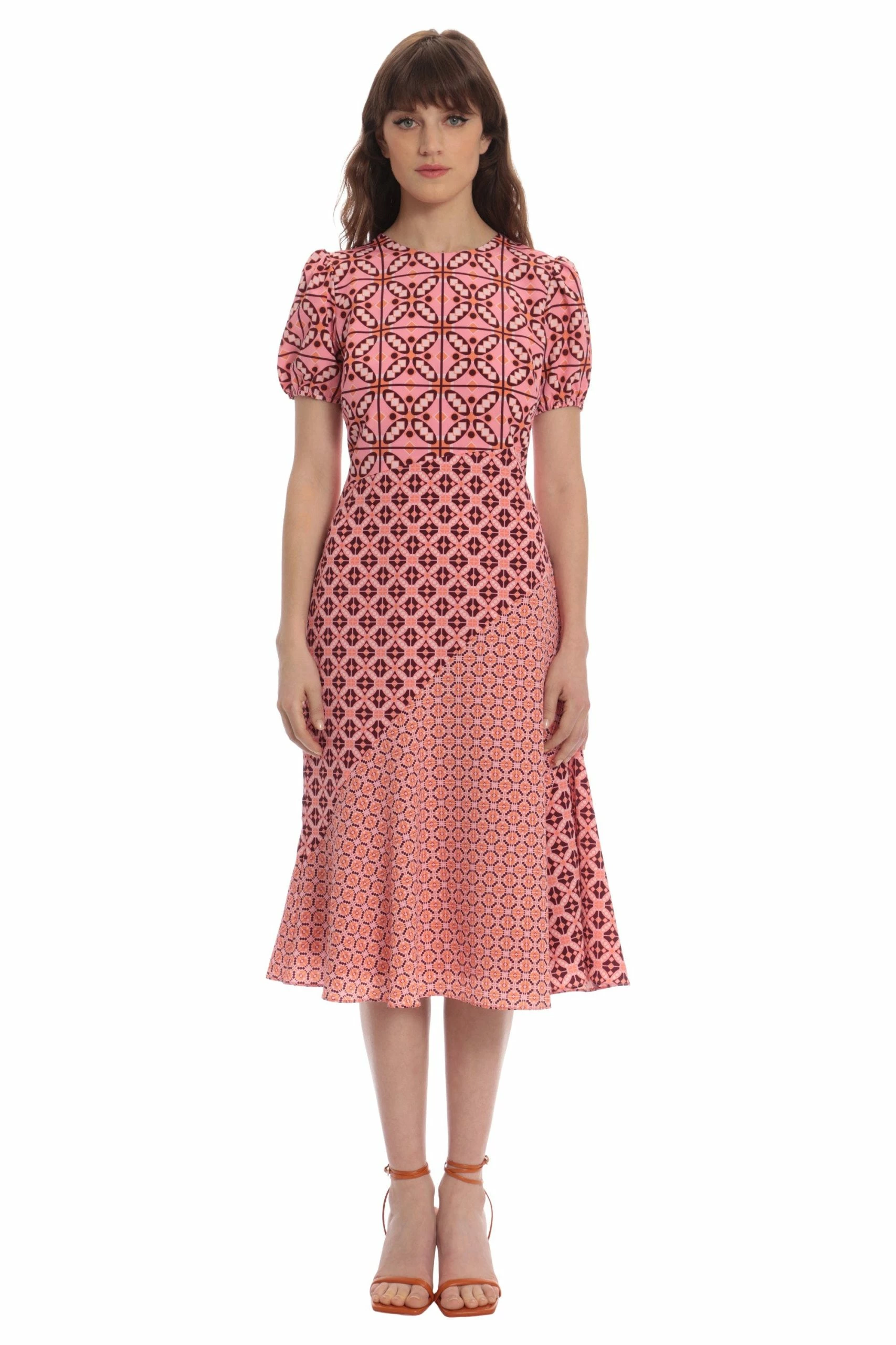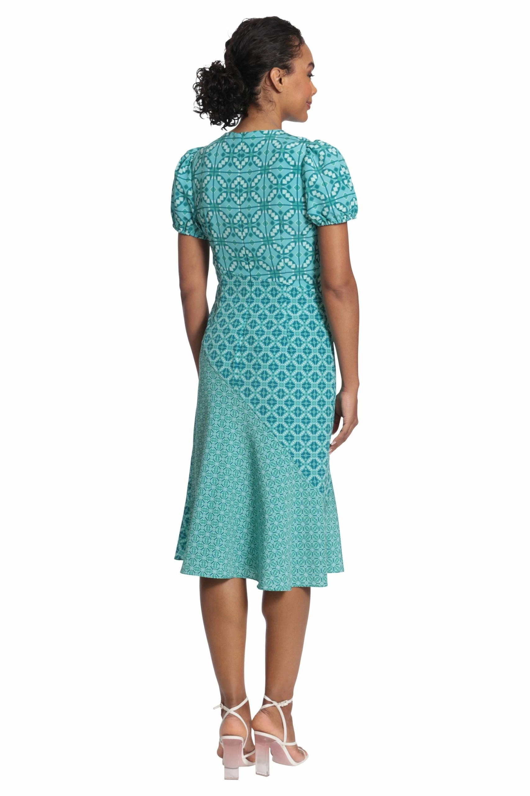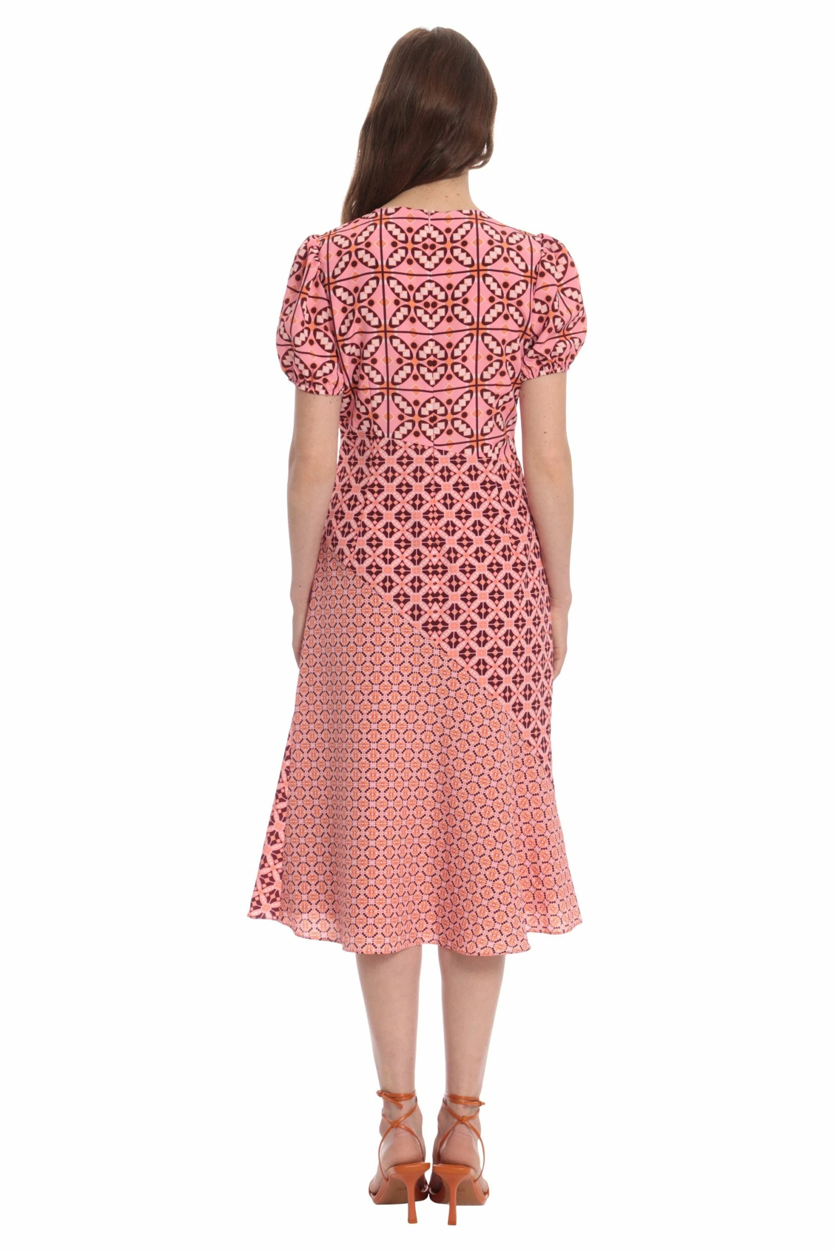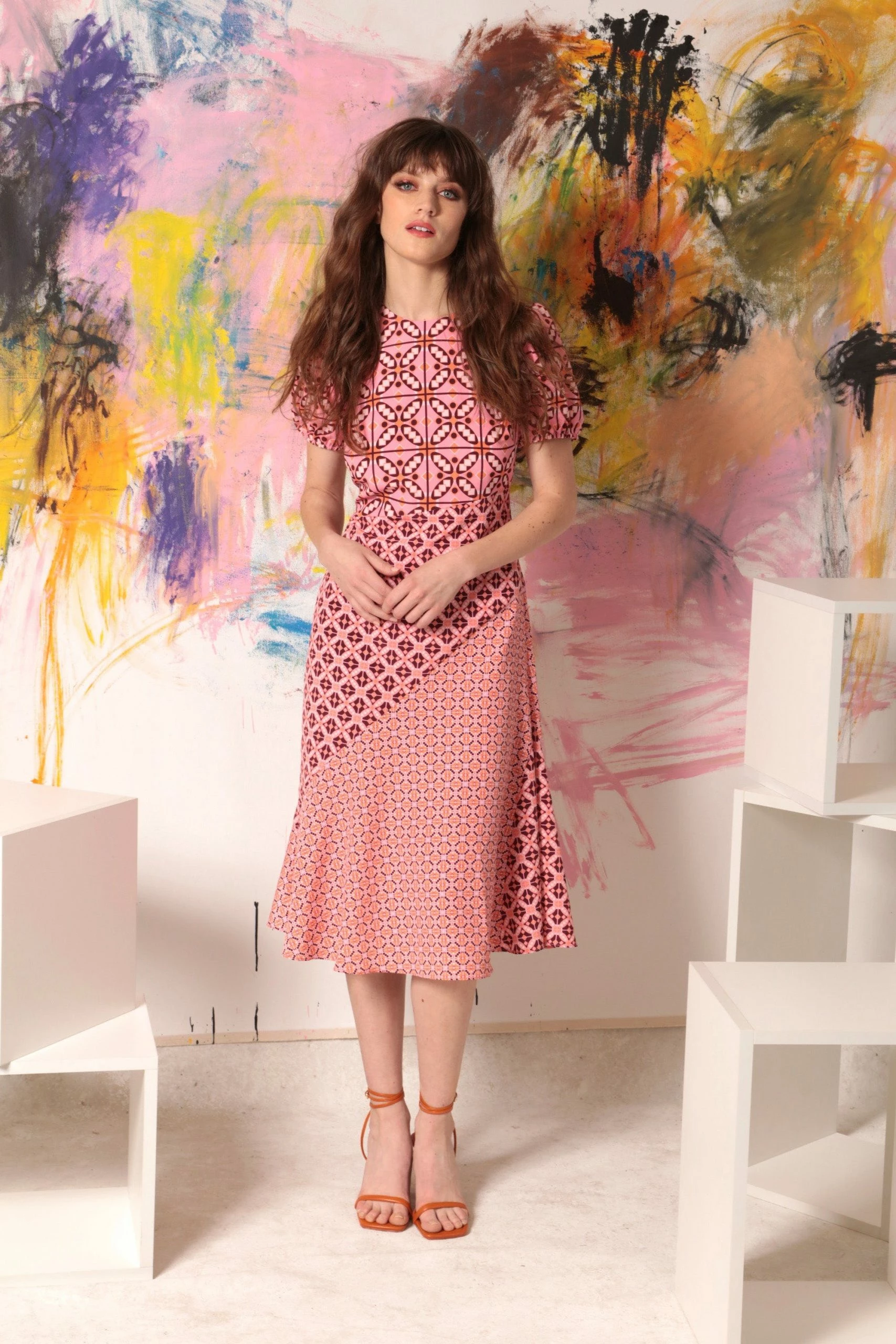 The myla dress is an instant add-to cart! We love her puff sleeves, gorgeous geo-print and slip dress silhouette!