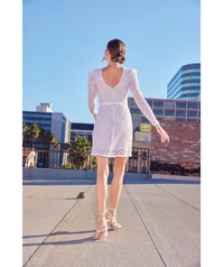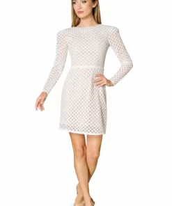 Bring the party wherever you go. This glitzy white sequin party dress is too much fun all on its own with an all-over crisscross pattern done in black sequins over the sheer white mesh. The nude lining underneath ensures the white sequin’s design pops with as much sparkle as possible. This snug mini dress has long sleeves to balance the above-the-knee mini skirt.