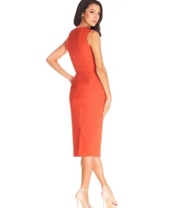 Chic is an understatement when it comes to the elle dress. A modernized queen anne neckline sets the tone on this sleek and sophisticated sheath that hits just past the knee. She is designed with a form flattering finish in poppy and a modestly elegant tone.