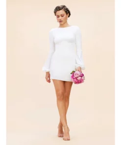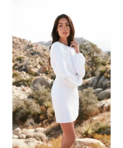Enter the room with style and grace with the Mackenzie mini dress in Off White. Created with a high round neckline, long sleeves that puff at the wrists, and a fitted blouson waist line that continues into a flattering mini skirt hemline. Her low back twisted detailing gives her a sexy finish that leaves them wanting more.