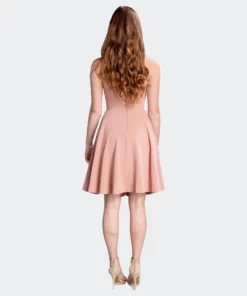 Sleeveless round neck waist wrap fit and flare midi dress.
