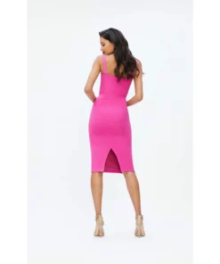 The nicole sheath cocktail dress stuns every time. This fitted sleeveless dress has a modern silhouette that features a sweetheart neckline, square back, and a slit in the back of the cocktail-length skirt. It’s made of flattering crepe fabric with little to no stretch in Bright Fuchsia.