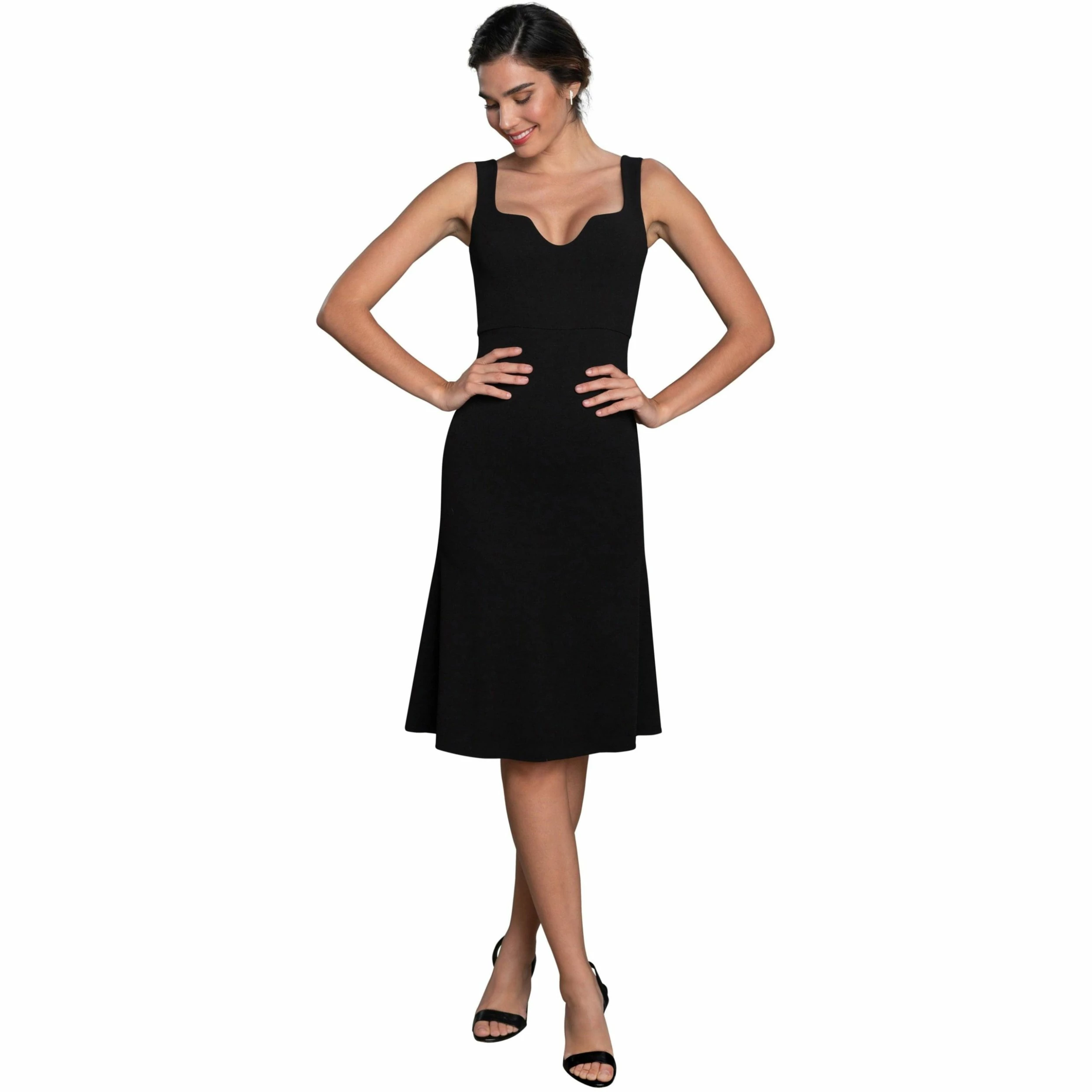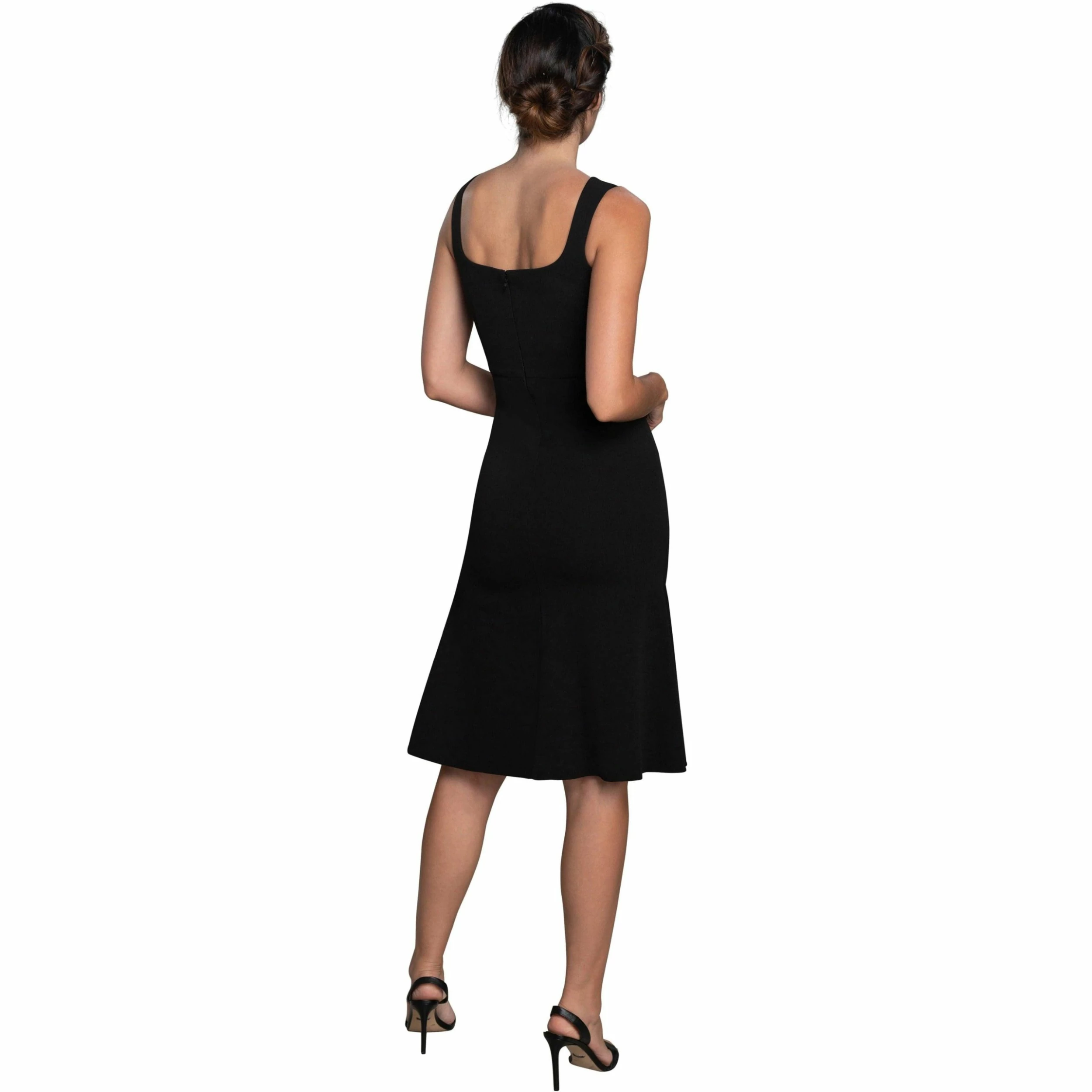 – Rounded V neckline- Sleeveless- Hem falls above the knee- Fit-and-flare silhouette- Center back zipper- Model is 5’10″/177cm