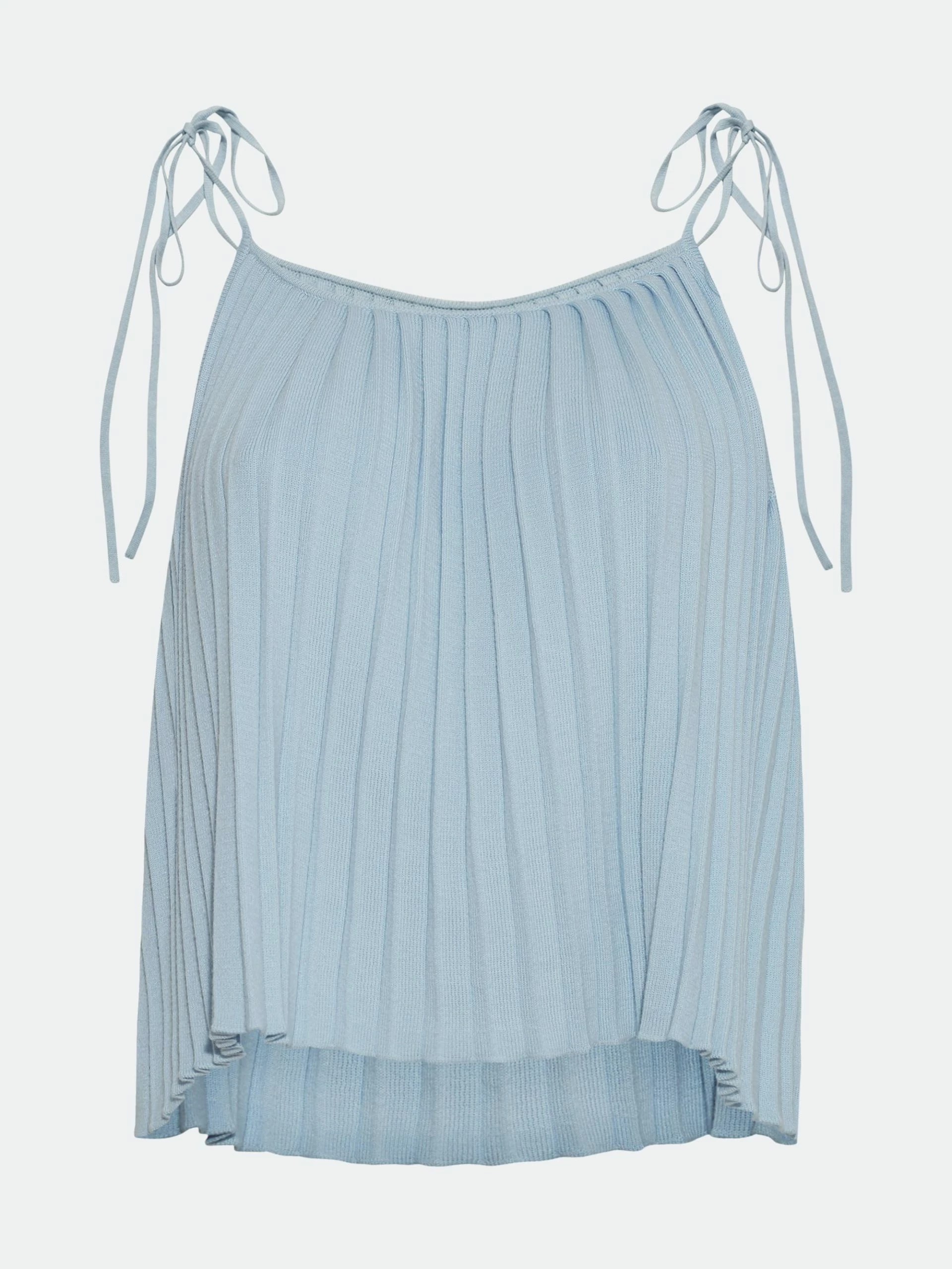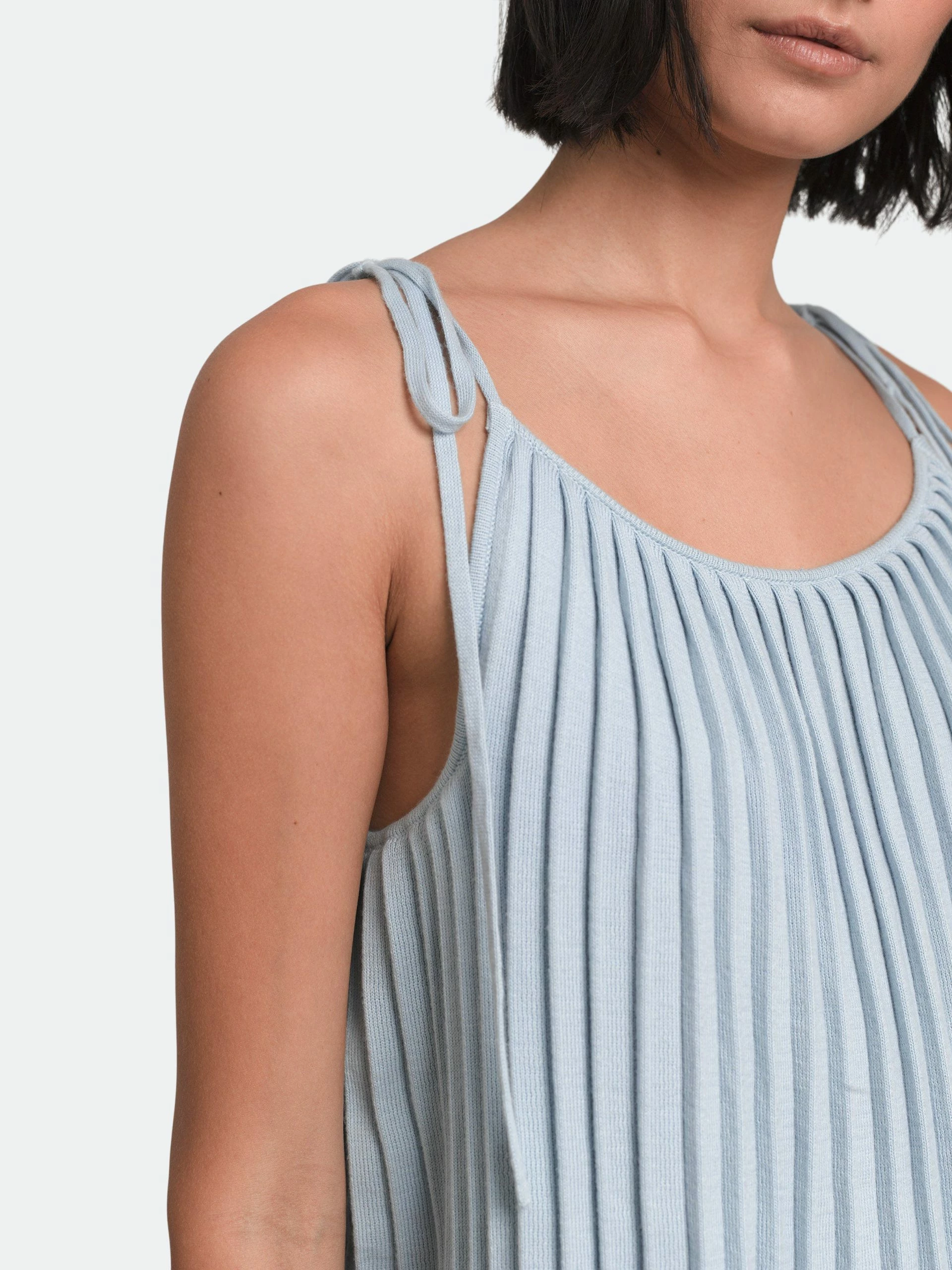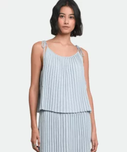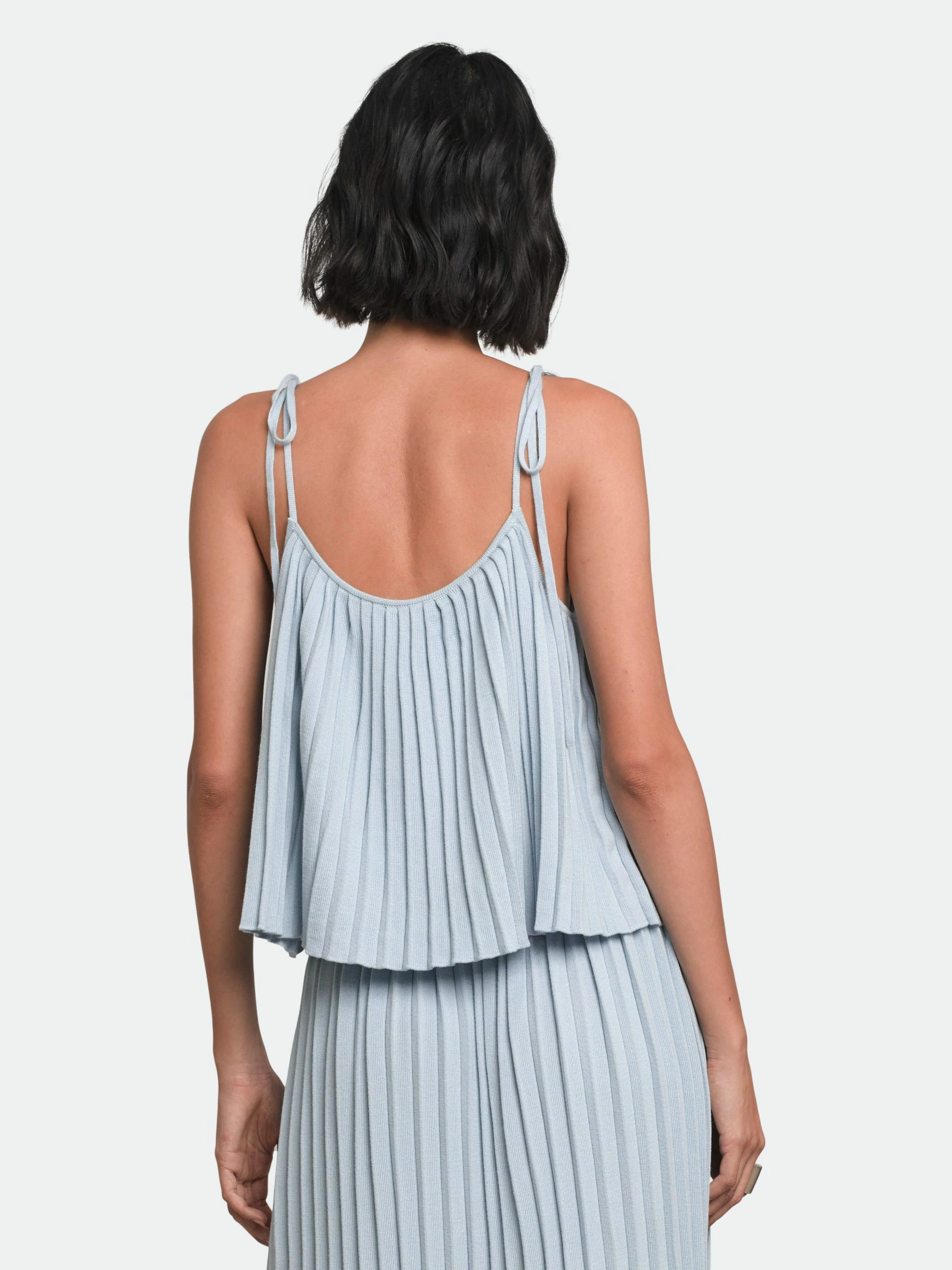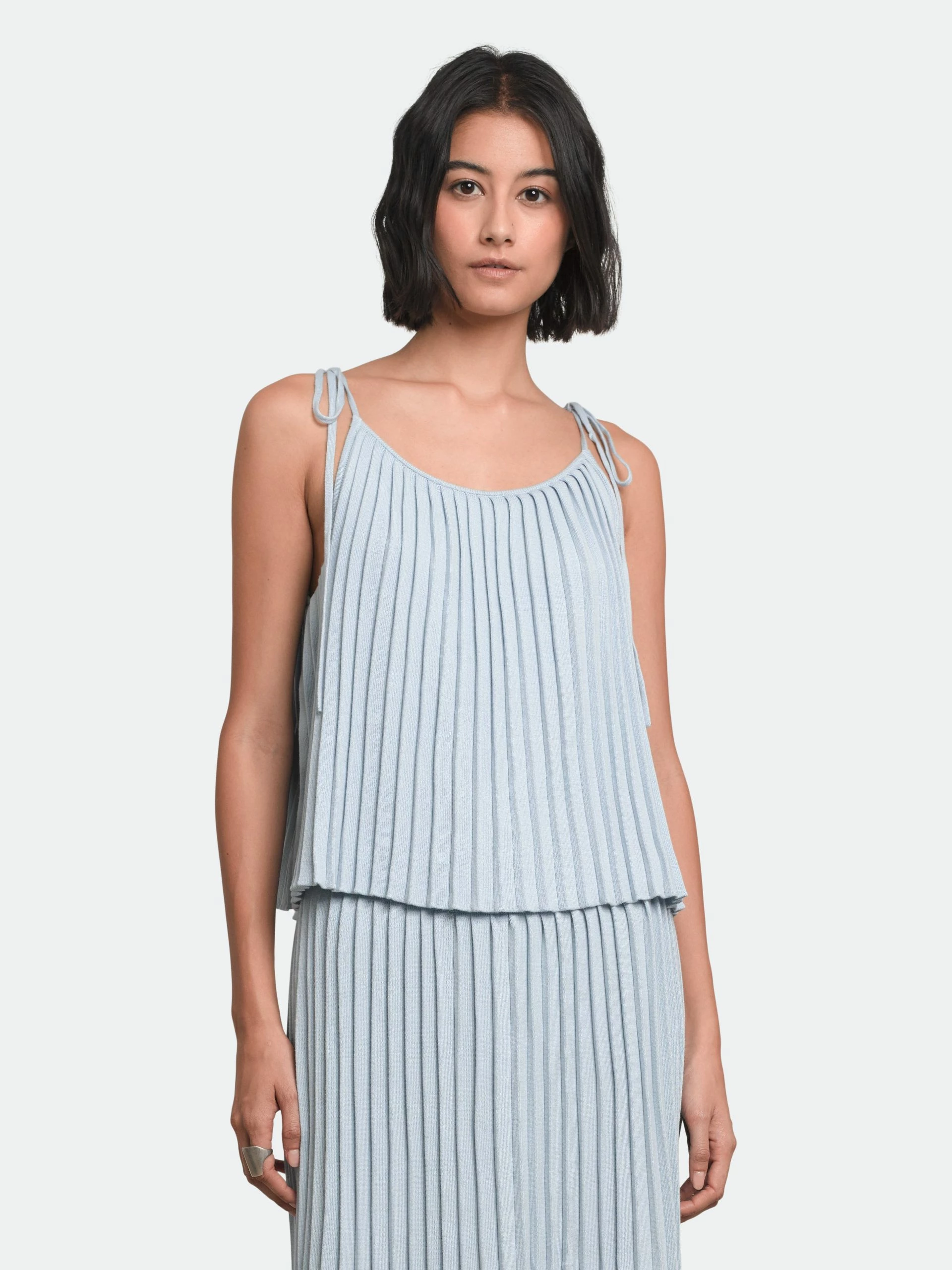 Valeria cami tank is an elegant, yet versatile, pop-on-and-go piece. The subtle, light-weight of the pima-cotton pleats give beautiful fluidity of movement. Valeria can be worn as a knit-dressing set by pairing back to the Violet Skirt for head-to-toe tonal dressing, or effortlessly styled with your favorite high-waisted pants.