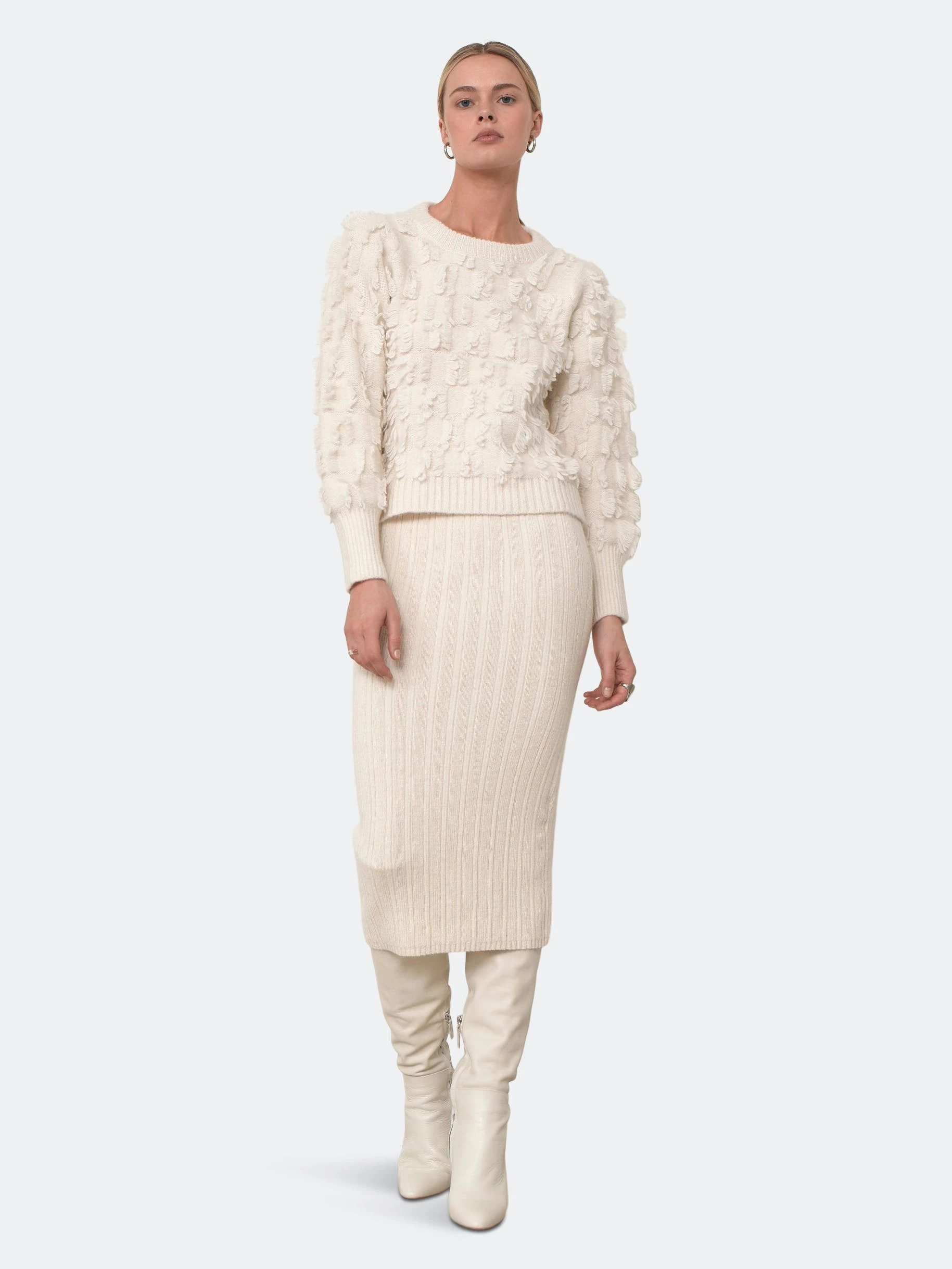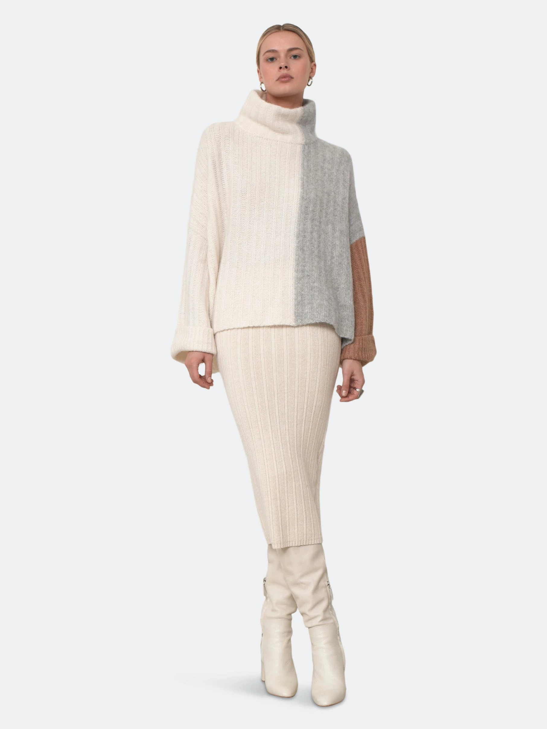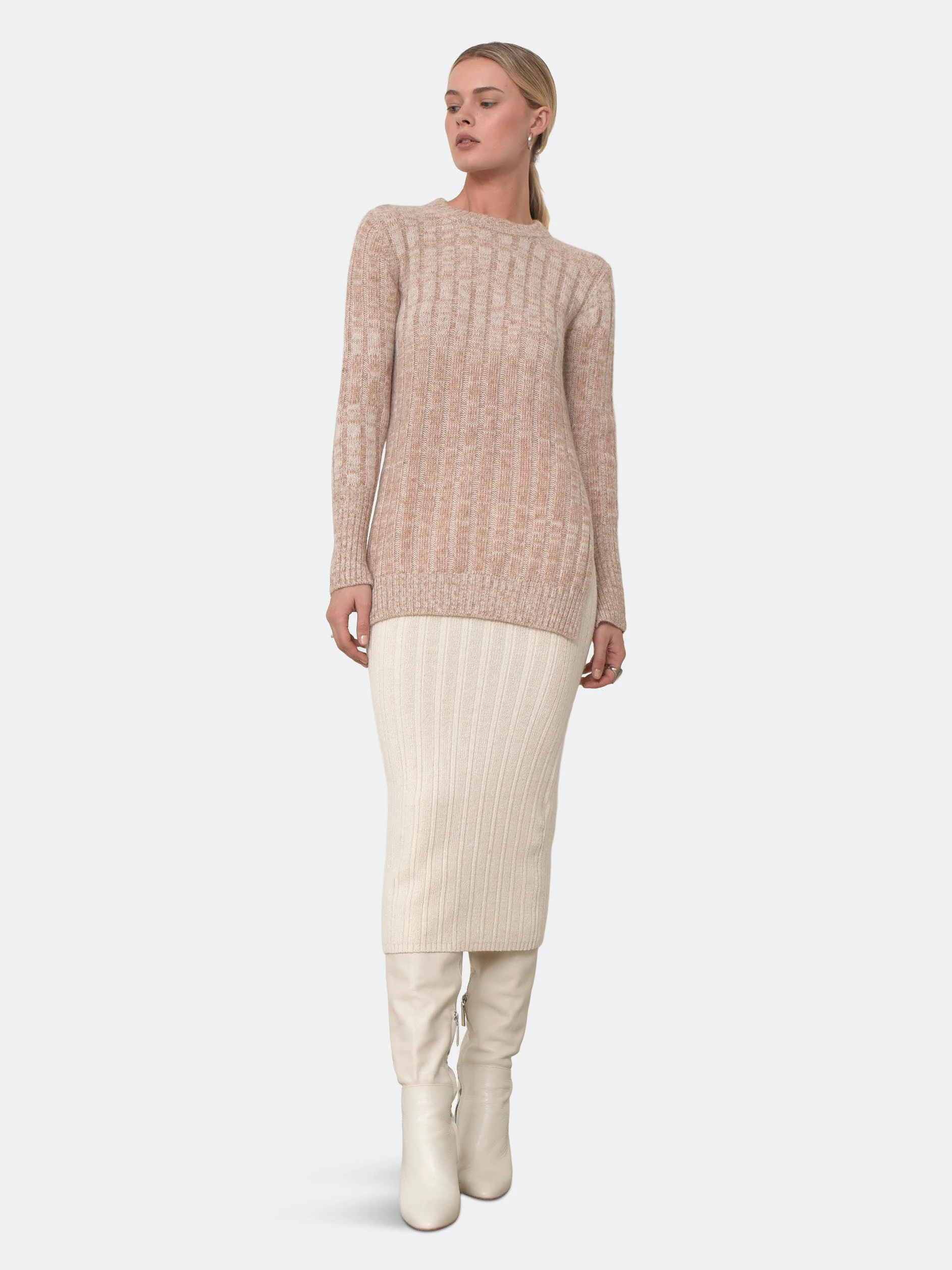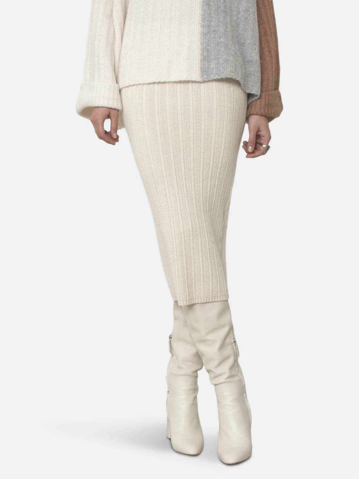 Ava is our new classic, versatile, variegated ribbed sweater tube-skirt, to pull on and go as an easy wardrobe stable. She has a flattering high-waist proportion with a double-jersey trim waistband. Also available in pale camel.