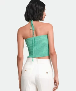Kaia is a versatile, ribbed, tube-top to pop-on-and-go, easily dressed up or down. The tube has a slim, flattering fit with removable halter-neck braided tie that effortlessly acts as a chic, seasonal-staple. Layer under the matching Isla cardi as a new twin-set or pair back to the matching Violet skirt (or both!).Kaia also available in Navy.FREE DOMESTIC GROUND SHIPPING OVER $300DETAIL:Sustainably made in Peru with LOVEMade from 95% Peruvian mercerized cotton, 5% elastaneRibbed texture stitch with added stretch to keep shapeRemovable braided halter neck tie.Best worn with a strapless braSIZING:Body length (top to hem): Approximately 8 1/2″Body width approximately: chest | waist | hip | bottom hem : 10 1/2” (skinny rib expandsModel is wearing size S