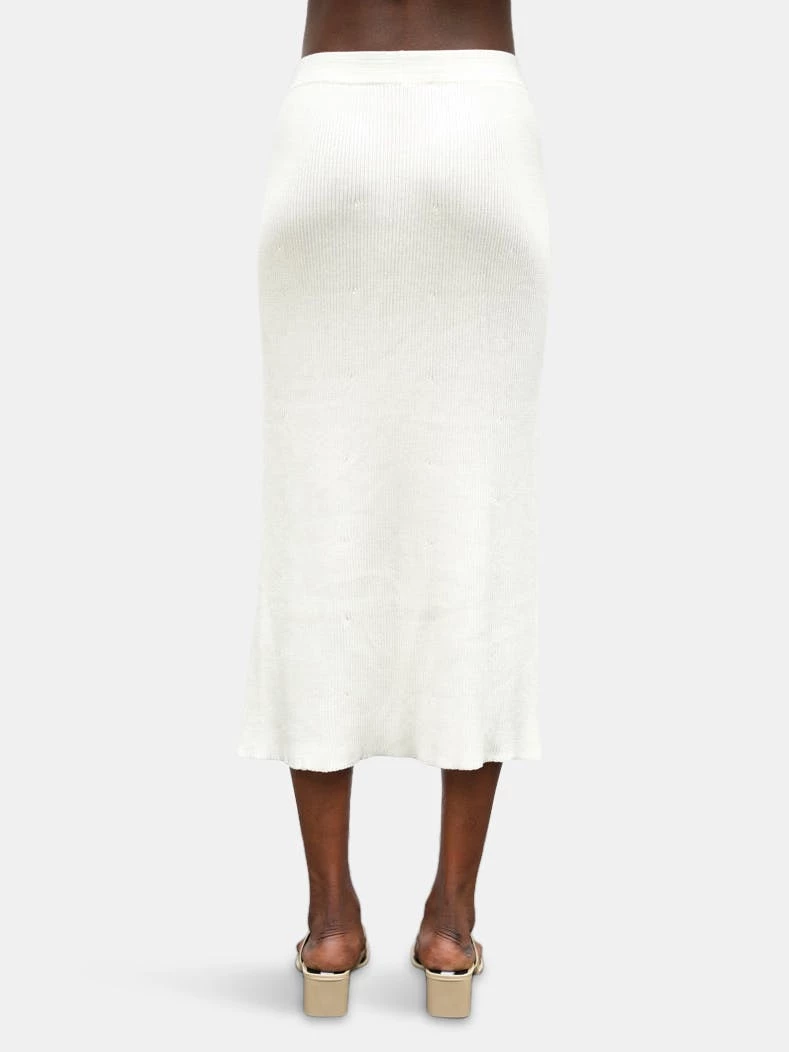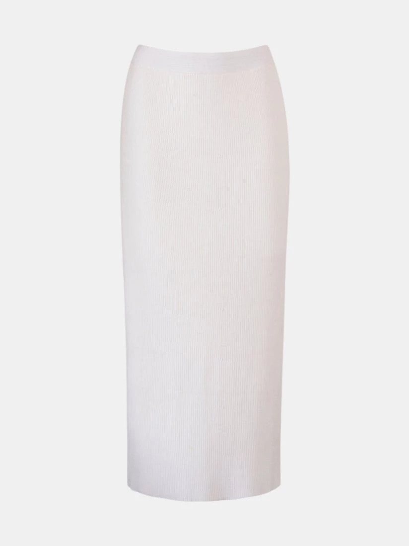 – Rib-stitch skirt with no elastane so the skirt can skim the body rather than cling.