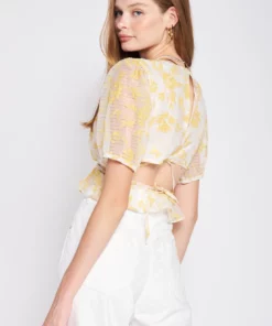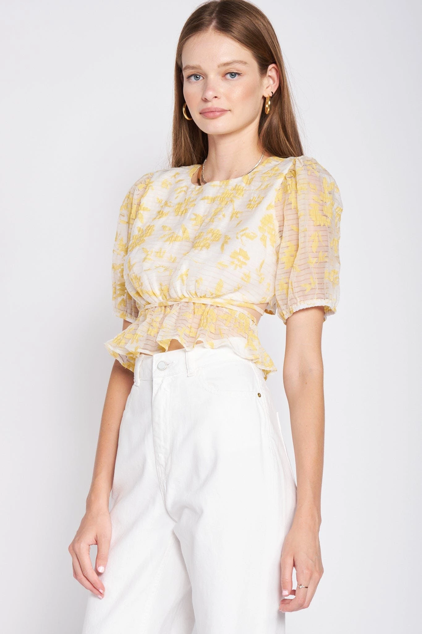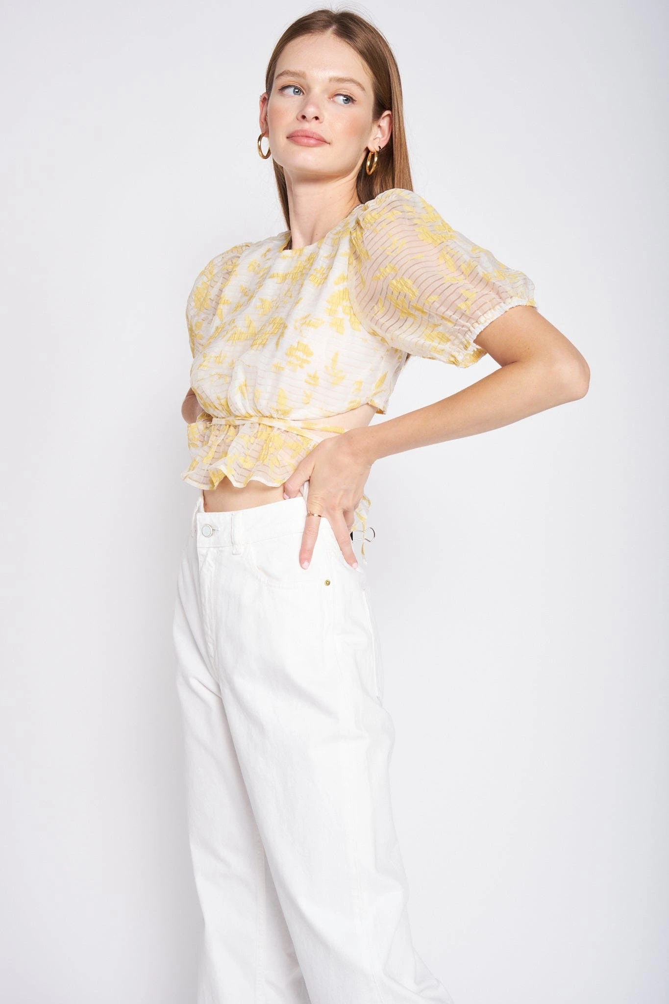 – Organza chiffon floral blouse- Model is 5’9 and wears size small