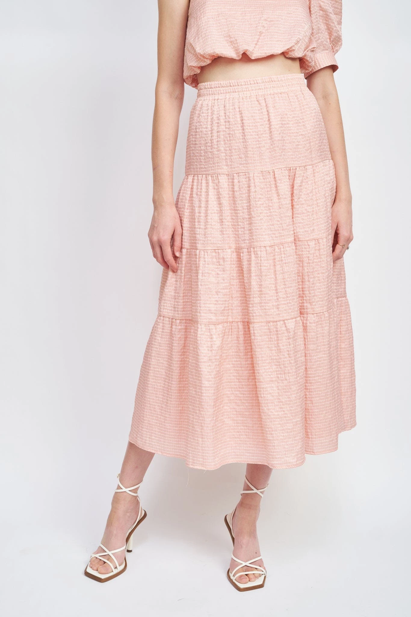 – Stripe midi skirt- Matching Set with Riley BlouseModel Measurement:- Model is 5’9 and wears size small